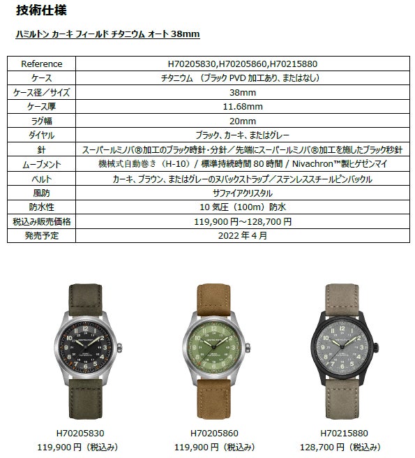 どのサイズやスタイルを選択しても、「カーキ フィールド チタニウム オート」は、まさにフィールドでの活動にふさわしい時計です。