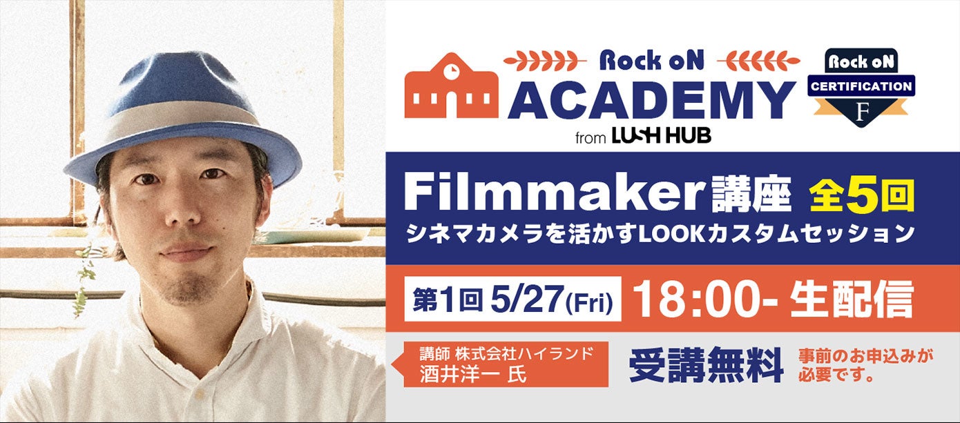 Rock oN Academy:Filmmaker講座がスタート! 第一回は5月27日(金)シネマカメラを活かすLOOKカスタムセッション!