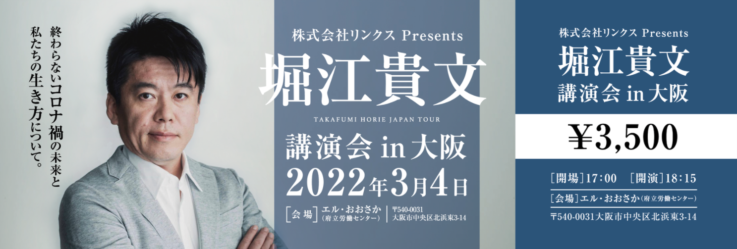 堀江貴文 講演会全国ツアーin『大阪』いよいよ明日開演!終わらないコロナ禍の未来と私たちの生き方について