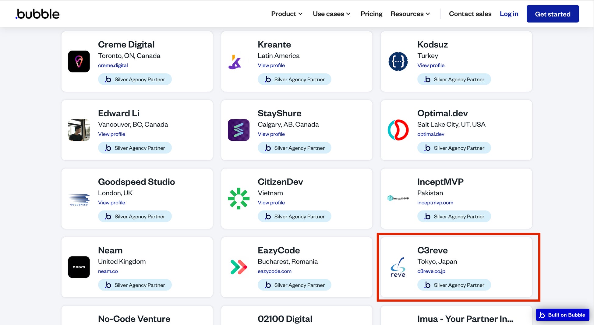 シースリーレーヴ株式会社(本社:東京都港区、代表取締役社長:空野正輝)は、ノーコード開発ツール「Bubble」のプラットフォームにおいて、アプリ開発を提供するプロフェッショナル開発者集団として、一定の成果と品質を達成したエージェンシーにのみ与えられる「シルバーエージェンシー」に認定されました。