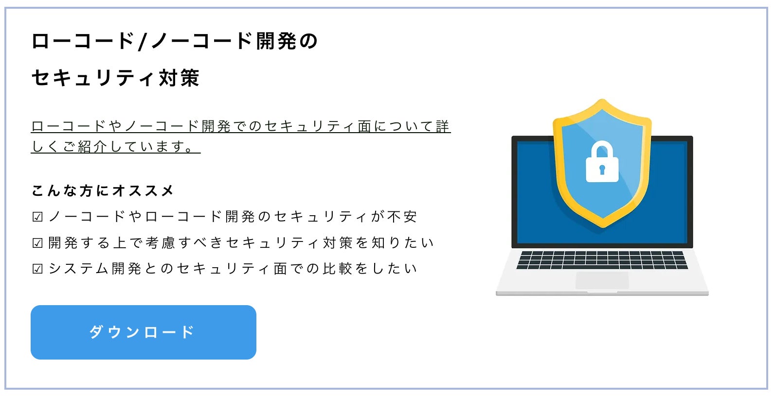 ◾️ノーコードやローコード、システム開発の基礎知識や開発実績、セキュリティ対策などについての資料を無料で開放中!