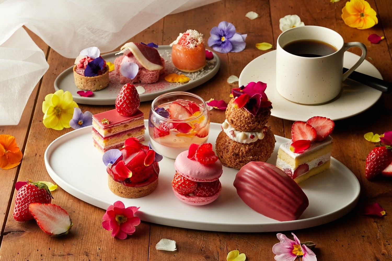 今回は、食べられるお花の「Edible Flower(エディブルフラワー)」をふんだんに使用した、クラシカルな雰囲気と可愛らしい見た目で、苺と花の食感や香りを愉しめるアフタヌーンティーを期間限定でご提供します。Floral Strawberry Afternoon Tea は3種類のセイボリーと7種類のスイーツ、そして飲み替え自由なコーヒー・紅茶で、存分に春の午後のひと時をご堪能いただけます。また、平日限定のSweet Afternoon Teaは、7種類のスイーツをご提供します。
