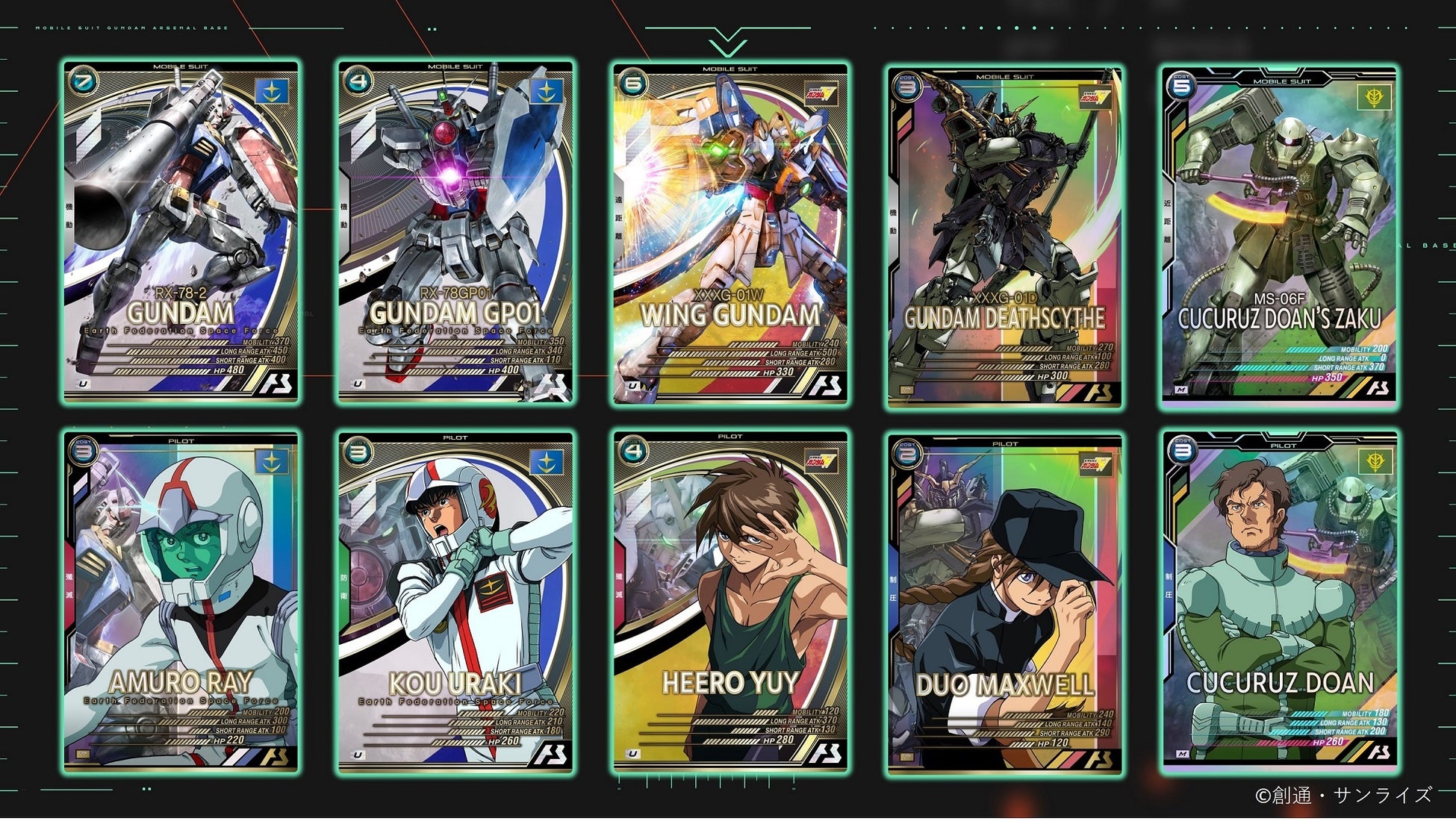 アーセナルベースには初登場となる『新機動戦記ガンダムW』、『機動戦士ガンダム0083 STARDUST MEMORY』を特集作品とし、この2作品からは多数のMS/PLが参戦いたします。また、最新劇場版作品『機動戦士ガンダム ククルス・ドアンの島』からもククルス・ドアンがPLカードとして新たに登場いたします。