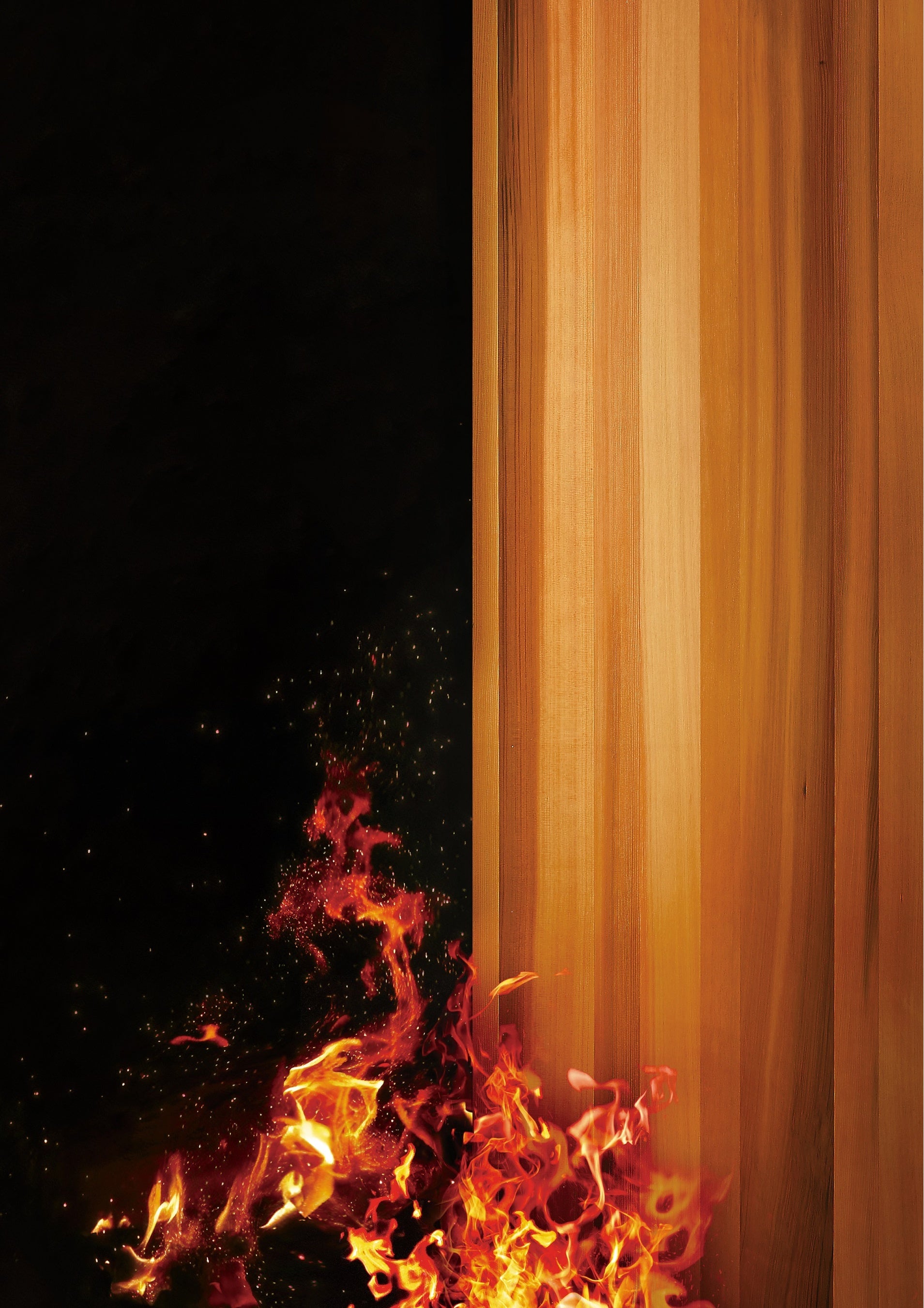国土交通大臣認定の不燃材料は、国土交通省の定める試験によって、製品の燃え広がりにくさや、有害ガス、煙が発生しないか等が評価されます。しかし、特に木材を使用した製品の場合、使用する木材は自然物であるため、同じ樹種であっても重さや厚みにバラつきが生じやすく、過去に、国土交通省の抜き打ち検査で不燃木材を扱う多数の会社が不合格になるという問題も発生しています。そこで弊社では、責任あるメーカーとして安心してお使い頂けるよう、製品のどの部分で試験しても100%基準に合格するという高い水準の不燃性能を、約6年かけて実現しました。