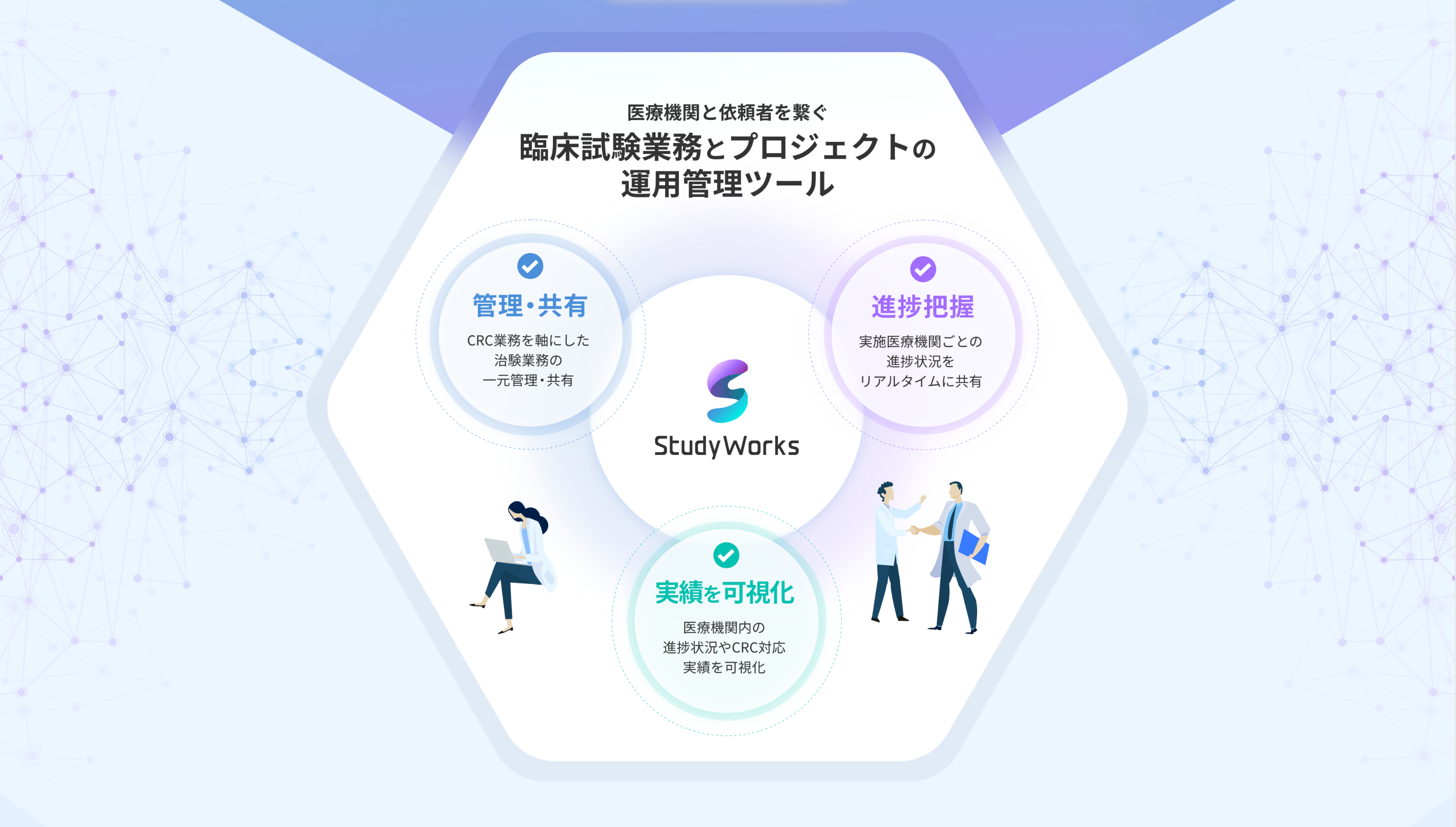 Study Worksは、大学病院や大規模病院グループ、がんセンターなどの治験実施医療機関向けに開発された治験業務/プロジェクト管理システムです。