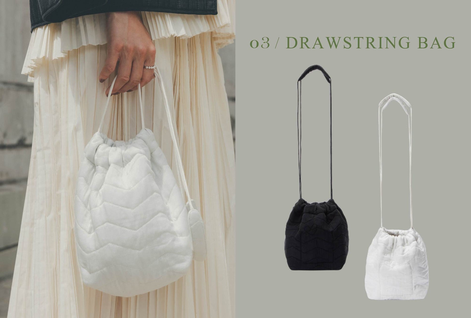 03 ヘリンボーンキルトドローストリングバッグ〔ブラック / アイボリー〕フリーサイズ ¥18,700