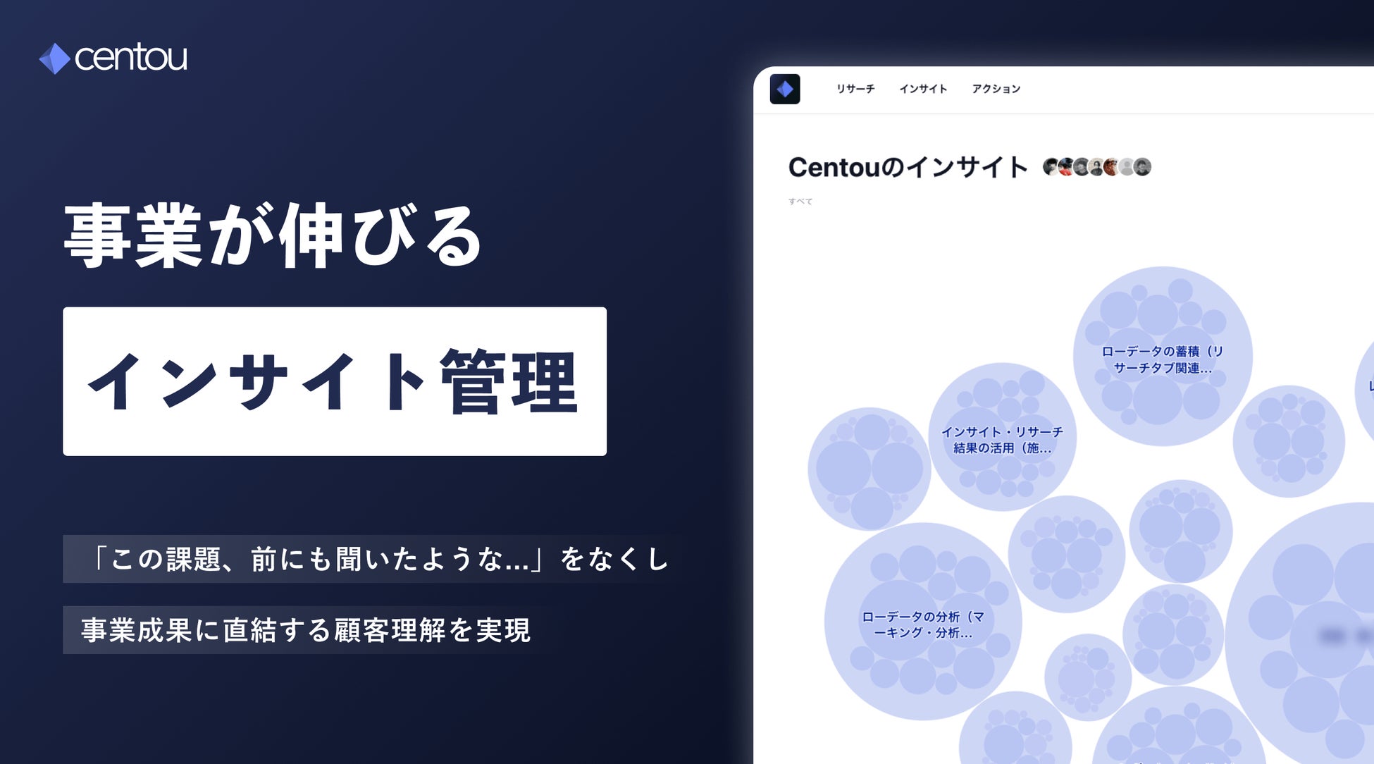 「Centou」は、ユーザーインタビューや顧客サポートなどで得られた顧客インサイトを管理する、日本初のインサイトマネジメントクラウドです。