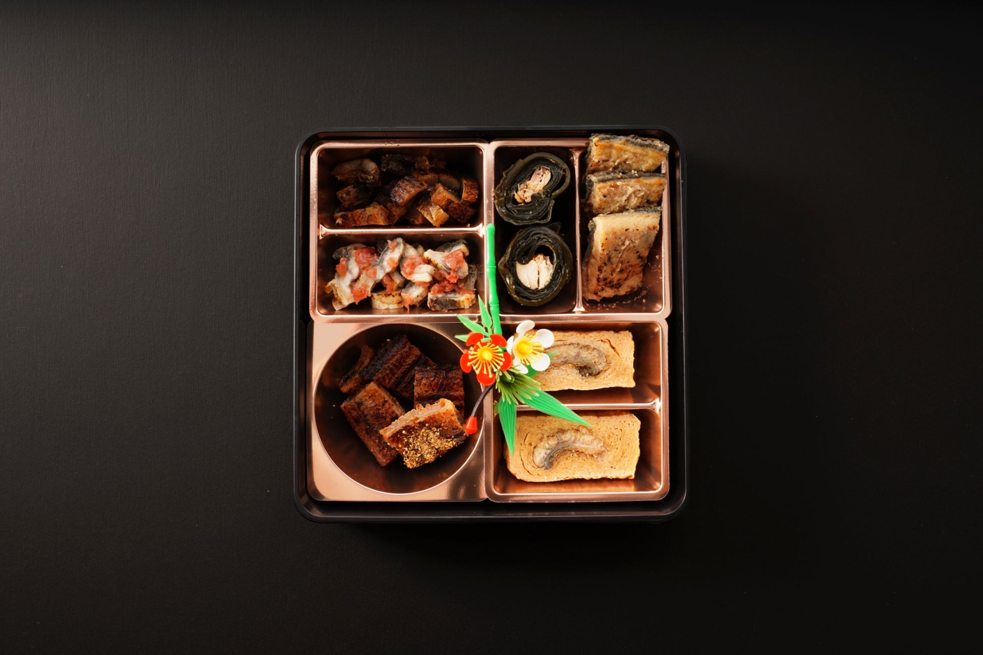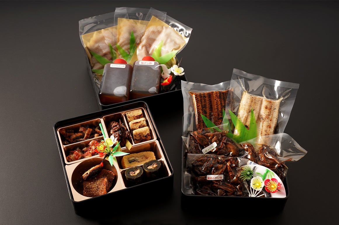 三段重のおせちには、蒲焼きや白焼きはもちろん、うなぎのしゃぶしゃぶや焼き肝など、さまざまな調理法で仕上げたうなぎが詰め込まれています。各段に異なる風味が広がり、食べ進めるたびに新たな発見がある、うなぎ好きにはたまらない内容です。限定100食のため、お早めのご予約をおすすめします。