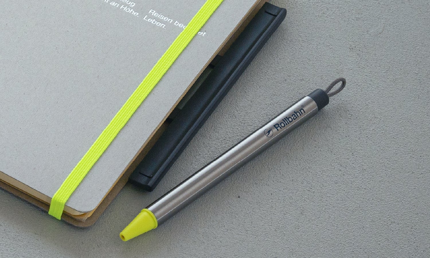 今回のコラボレーションでは、スチール製のボディを採用した「pitan」と、特別デザインのロルバーン ポケット付メモが登場。スチール製のボディを採用した別注カラーの「pitan」は、素材感を活かした銀軸の差し色にネオンイエローを配し、クールな印象に仕上げました。