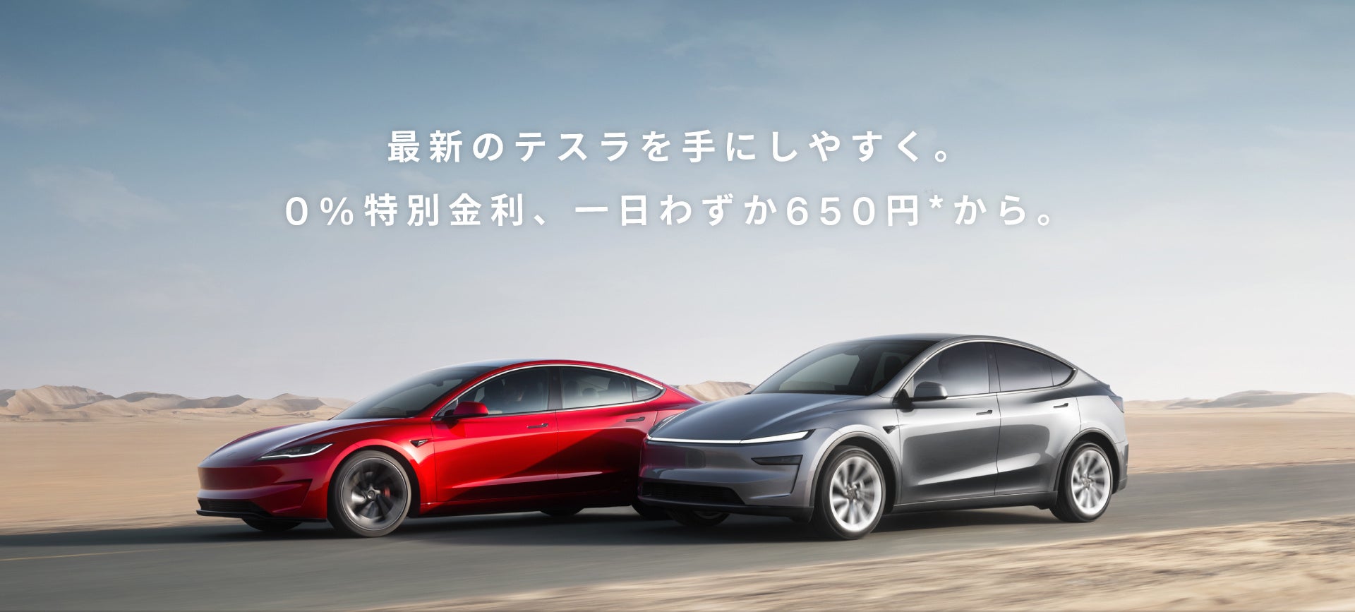 テスラは、2025年7月1日より、Model YおよびModel 3の在庫車を対象に、0%特別金利キャンペーンを開始しました(9月30日までのご注文が条件)。このキャンペーンでは、ローン支払いの負担となる金利をテスラが負担することで、月々の支払いを大幅に軽減することができます。このキャンペーンは、新しいModel Yにも適用され、テスラの先進技術をより身近に感じていただけます。