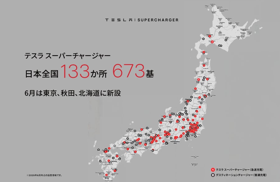 電気自動車を社会で適応させるには、どこへ行ってもシームレスで便利に充電ができる充電環境を整えることが不可欠です。テスラは引き続きオーナーの皆様がどこへ行ってもプラグを差し込むだけで簡単に充電することができるように充電設備の拡張に取り組んでいきます。