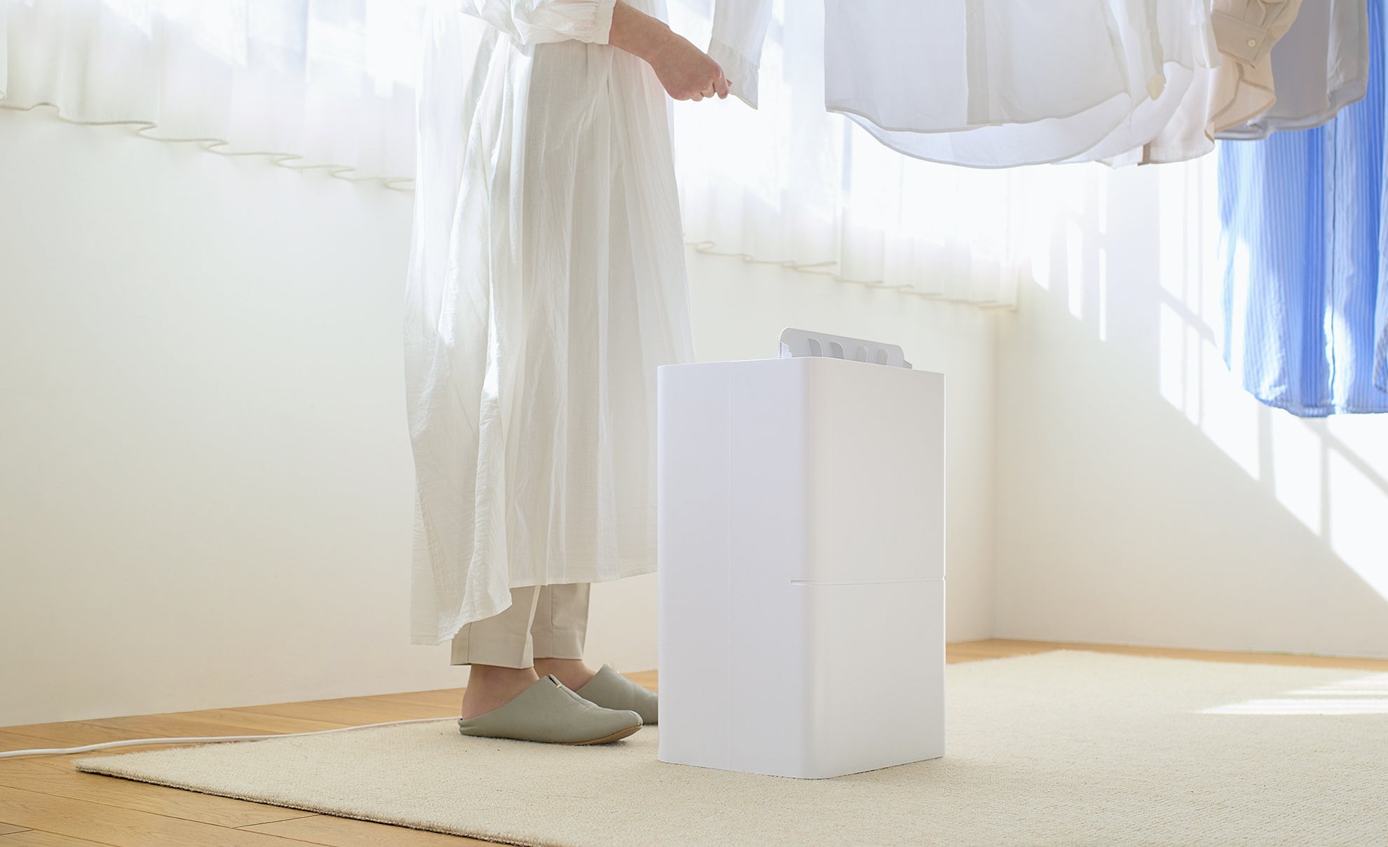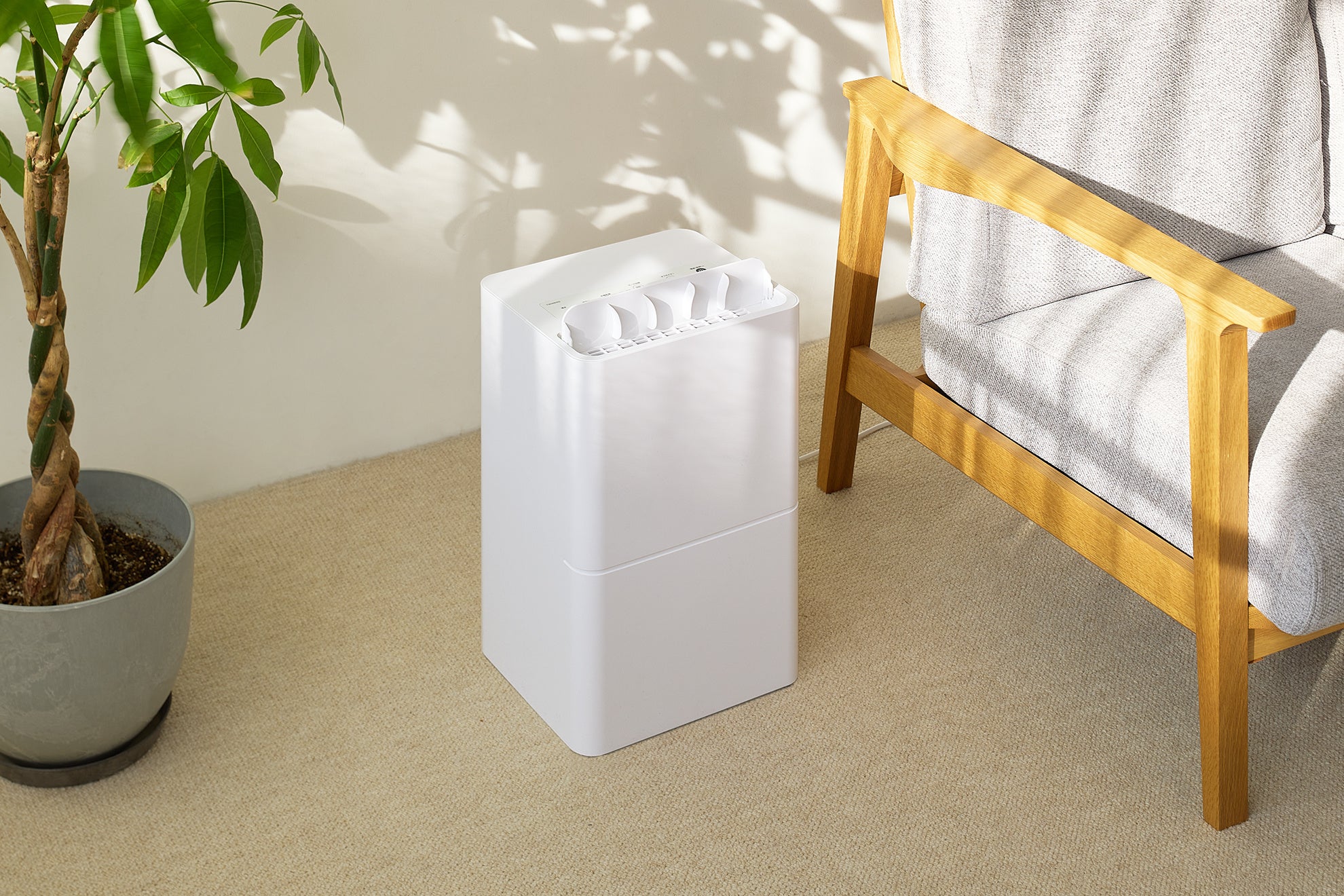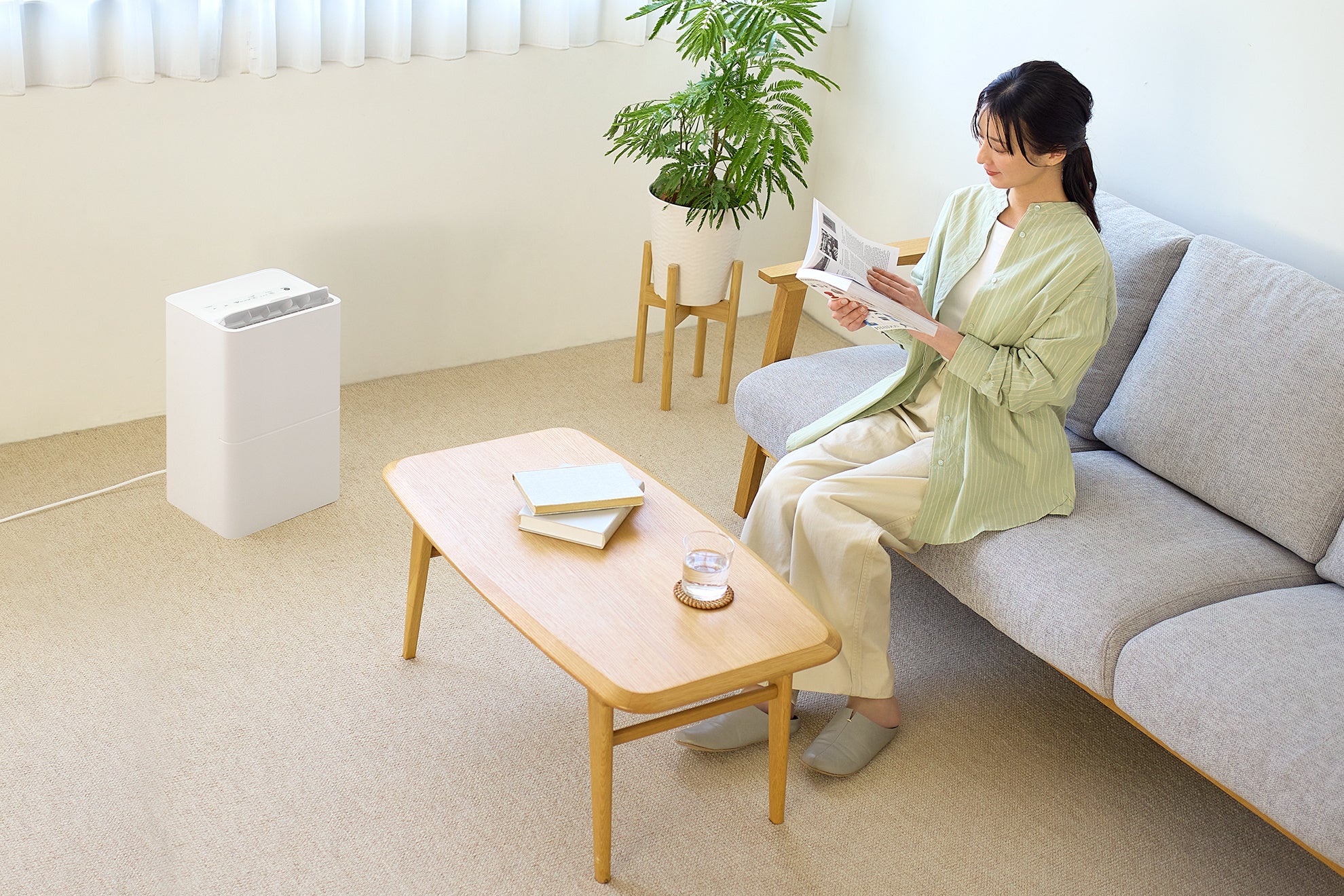 「空気清浄機能付き衣類乾燥除湿機」は、湿気が多くなる梅雨時期や花粉が気になる季節も生活空間を気持ちよく整え、年間を通じて快適な室内空間を提供します。