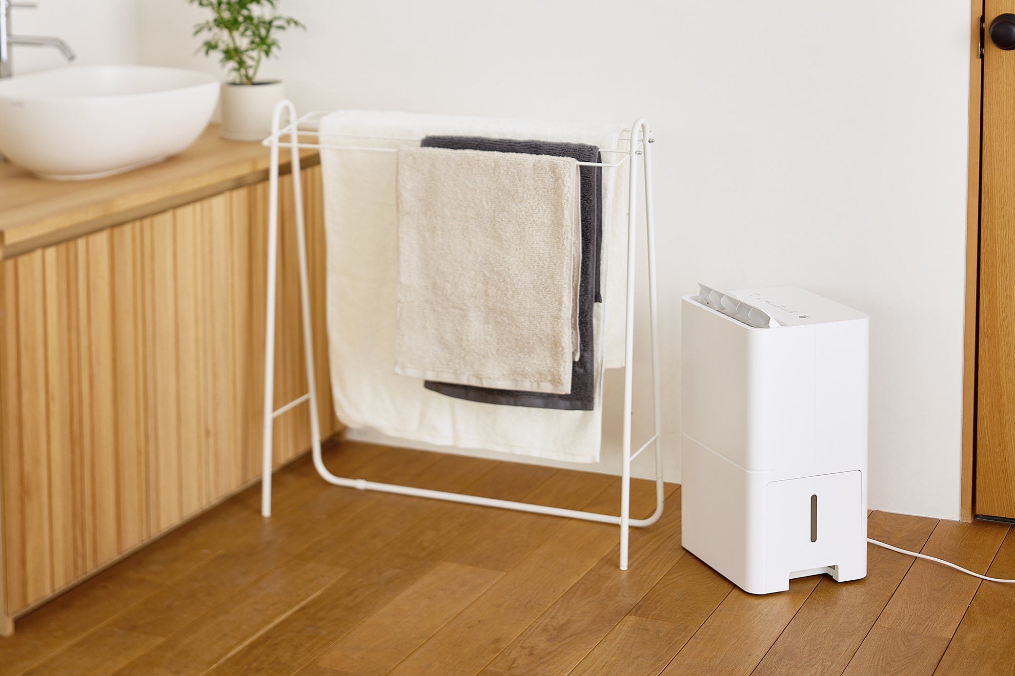 雨の日や普段の部屋干しをサポートします。除湿された風を洗濯物に向けて出し、周辺の湿度を下げることで、効率的に乾燥します。