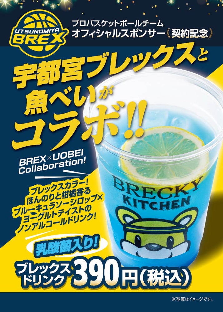 ブレックスカラーのノンアルコールドリンクを栃木県をはじめ、対象の魚べい店舗で販売します。