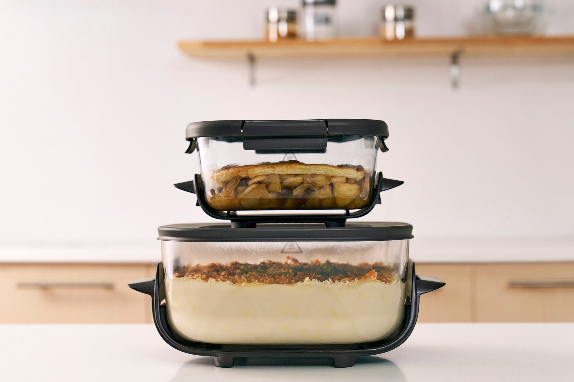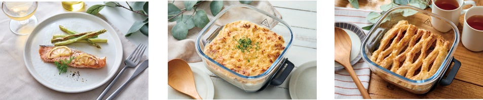 さらにガラスコンテナひとつで「下ごしらえ」から「加熱調理」、「サーブ」、「冷蔵・冷凍保存」、「温め直し」まで行えるため、調理の段取りがスムーズになり、洗い物も減って、より気軽に料理をお楽しみいただけます。
