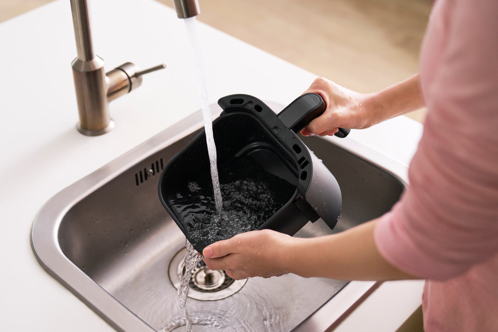 バスケット内とプレートは人体や環境に影響を及ぼす可能性のある有機フッ素化合物(PFAS)を使用していないナノセラミック加工がされており、安心して使えます。
