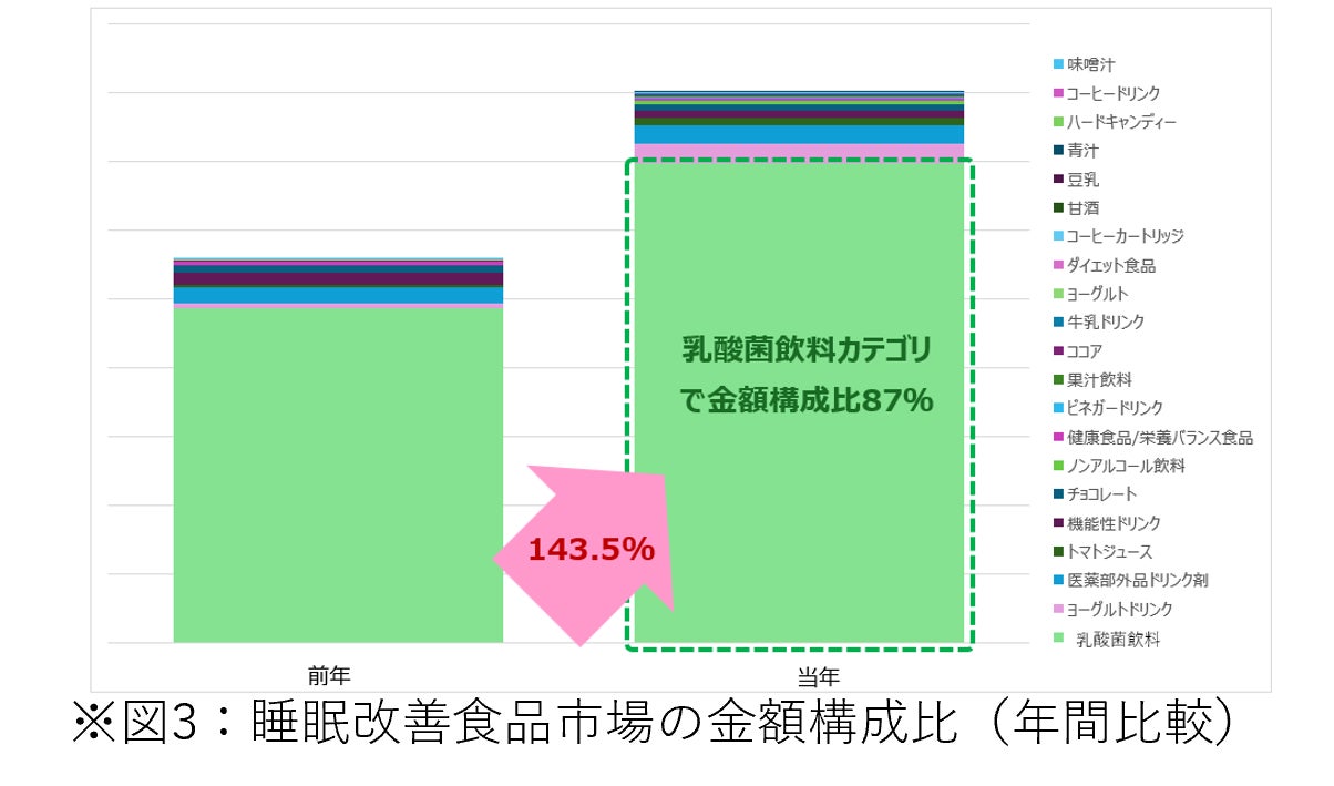 前年比143.5%成長!「睡眠改善」食品が絶好調!乳酸菌飲料が市場を牽引、さまざまな類似カテゴリにも影響購買データが語る消費者ニーズは「育児疲れ」への対応策!?