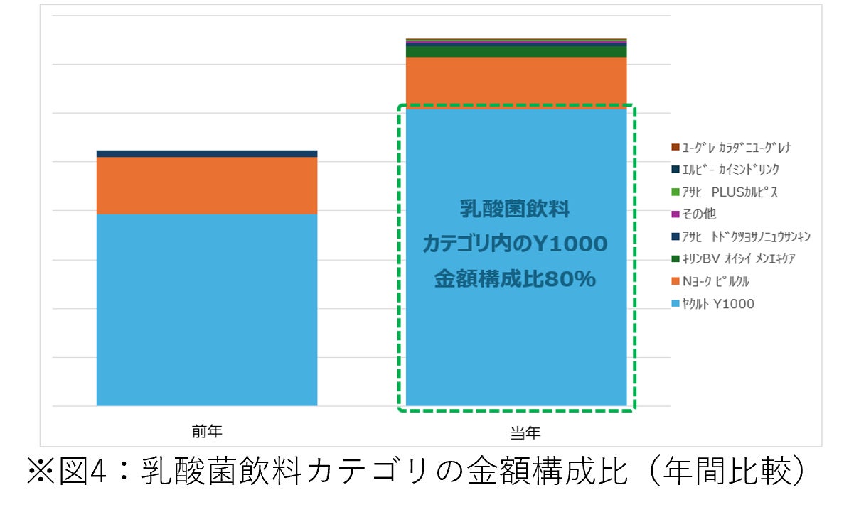 市場の牽引役は87%を占める「乳酸菌飲料」、ブランド別ではヤクルトのY1000が大幅成長