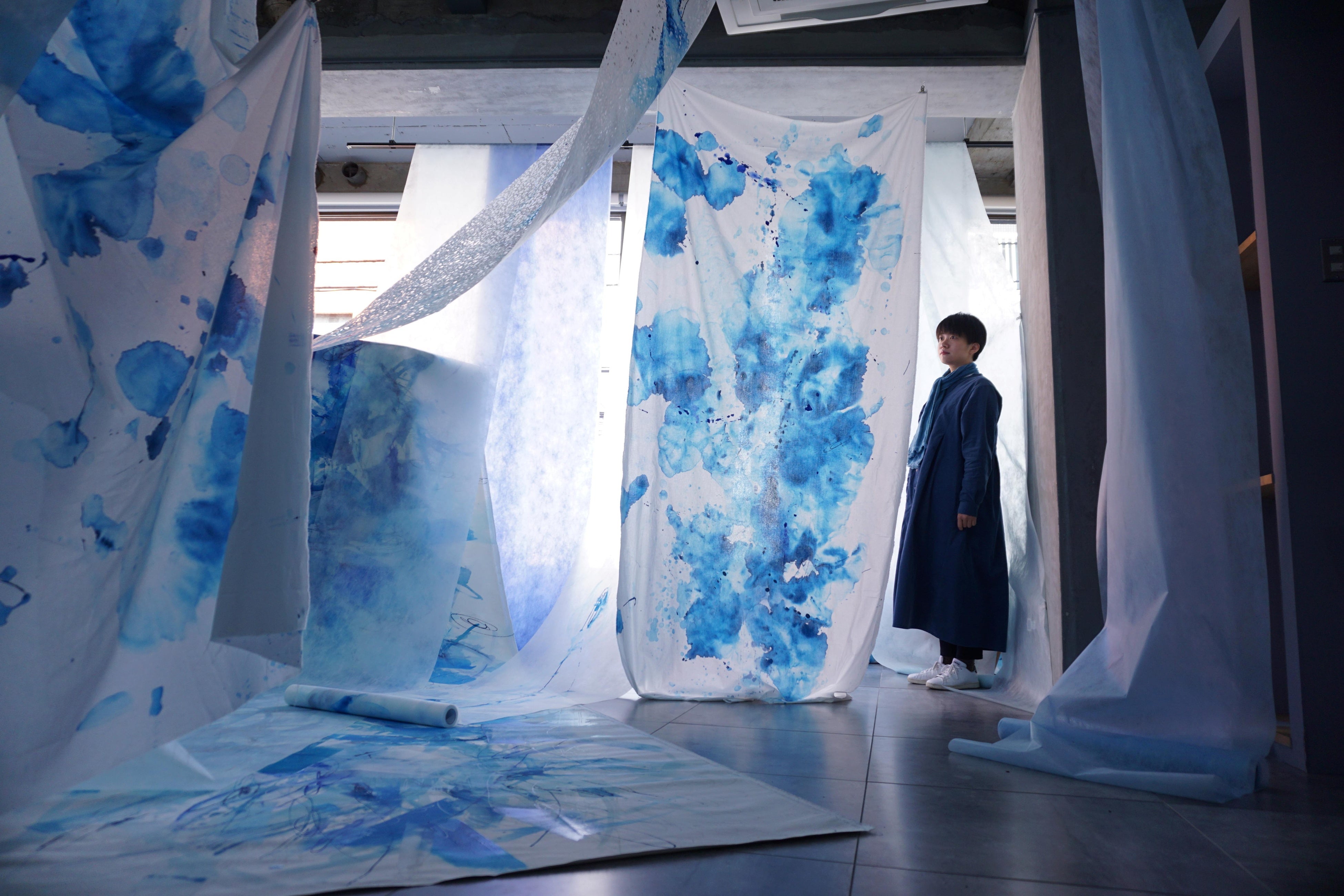 1995年、福岡県生まれ。九州産業大学芸術学部デザイン学科卒業。「記憶と時間の可視化」をテーマに、青を基調とした抽象画や空間芸術作品を制作し国内外で発表。現在は福岡市東区箱崎の銭湯跡地「大學湯」を拠点とし、保存利活用プロジェクトのメンバーとしても活動している。