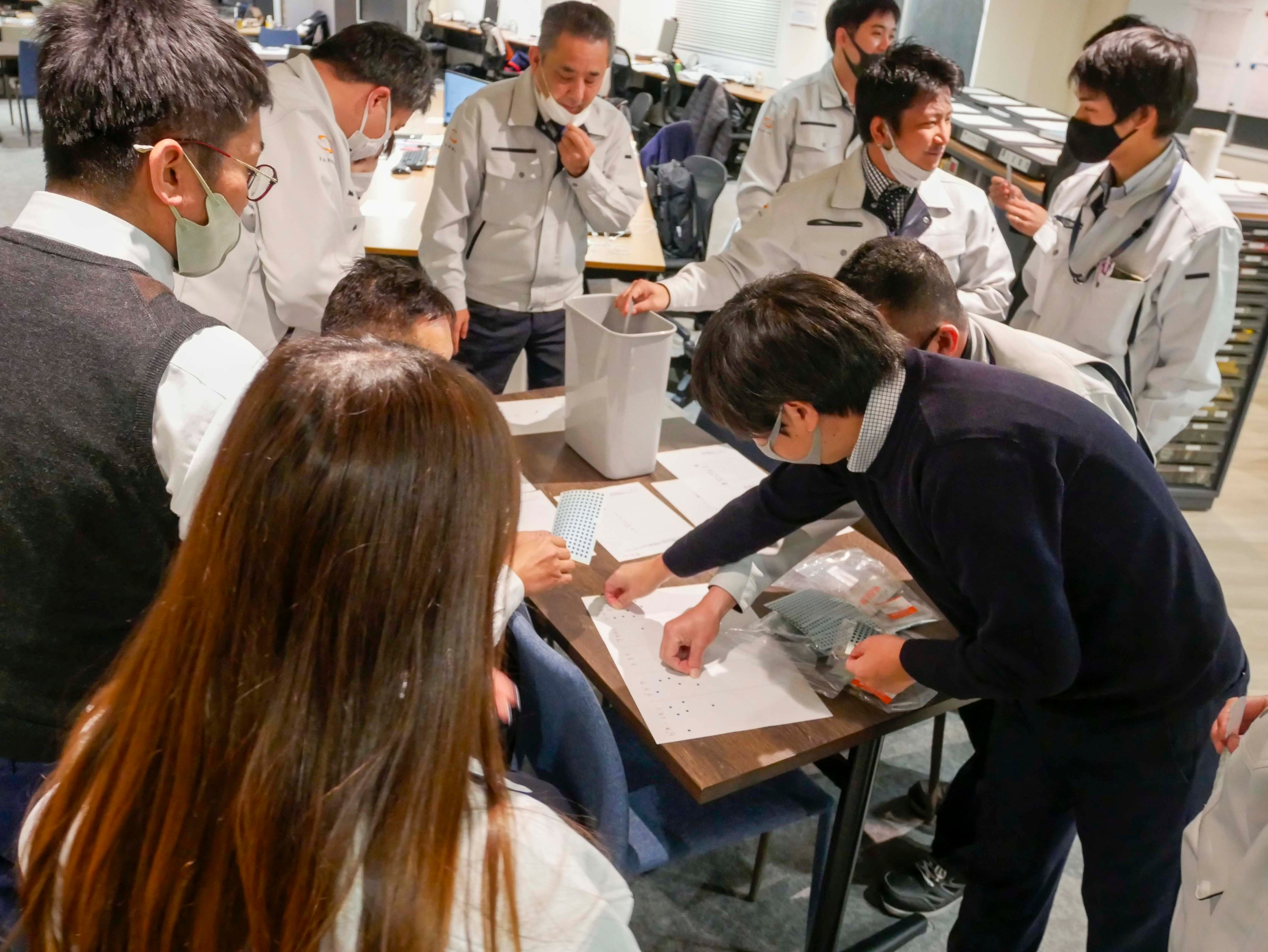 ゼリーであれば、炎天下の厳しい暑さの下でも口にしたくなります。また、キシリトールを配合することで、夏バテしていても食べやすくしました。形状は、作業中も持ち歩きやすいスティック状です。さらに、朝礼、午前10時・正午・午後3時、1日4回の休憩時に食べることを想定して熱中症予防に足る塩分配合としました。味はマスカット・ライチ・レモンなど5種類。飽きずに食べ続けられるようにと、三和建設の社員らで試食を繰り返し、7種類の中から投票で決めたものです。