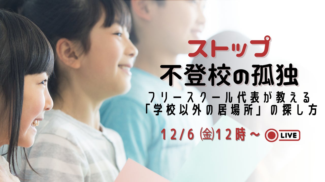 【ストップ不登校の孤独】フリースクール代表が教える「学校以外の居場所」の探し方:12/6開催オンラインイベント