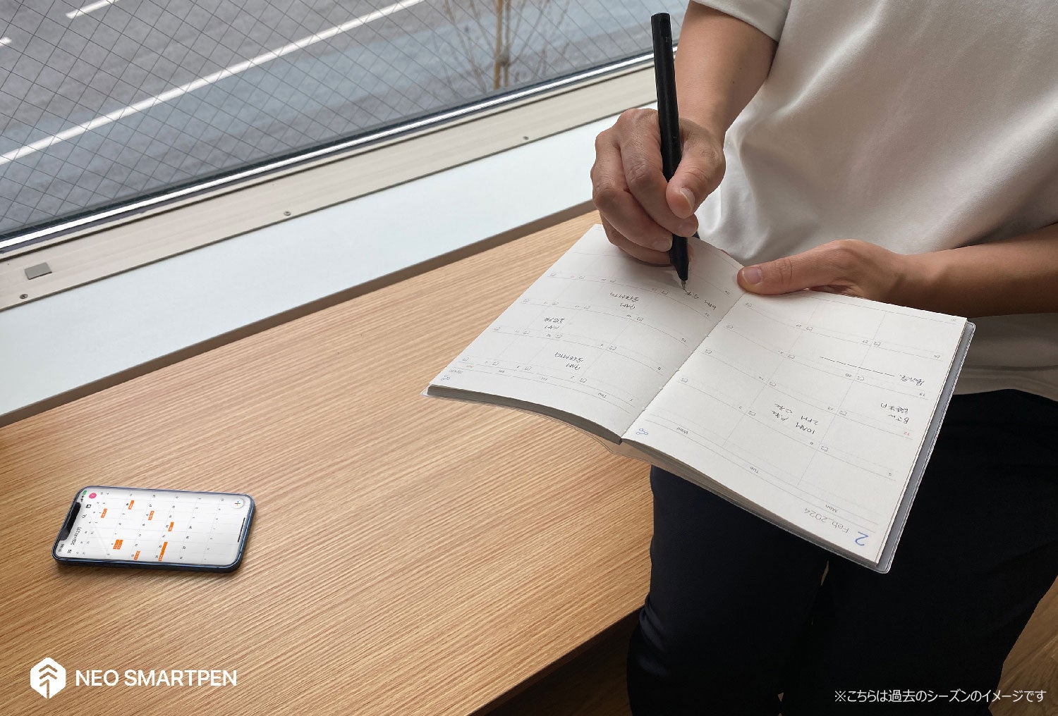 この手帳にNeo smartpenで手書きした予定は、専用アプリ「Neo Studio」によりノーステップで書いたそのままデジタル化。手書きなのに複写されるような使い方ができます。手書きなのに検索もできる驚き、利便性を日常にできる紙の手帳です。