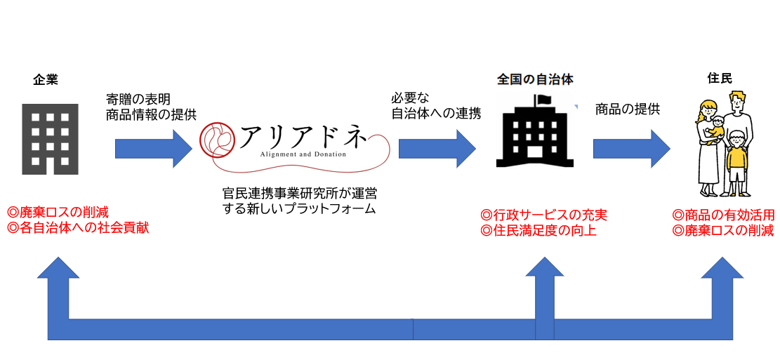 ㈱官民連携事業研究所が、「廃棄ロス削減」を実現する三方良しの、日本で唯一*の官民連携寄贈プラットフォーム 『アリアドネ』(Aligment and Donation)事業をスタート