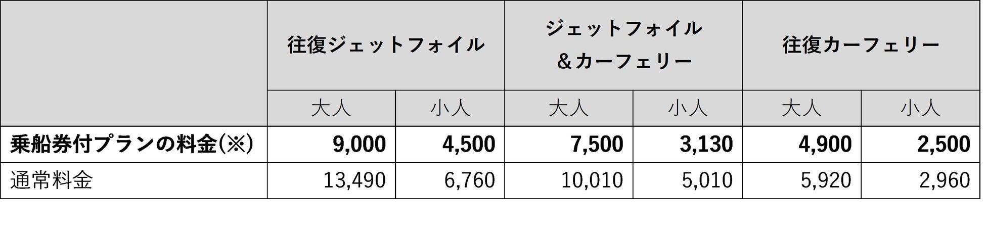 ジェットフォイル往復の場合、通常料金と比較して大人4,490円、小人2,260円も割引になります。