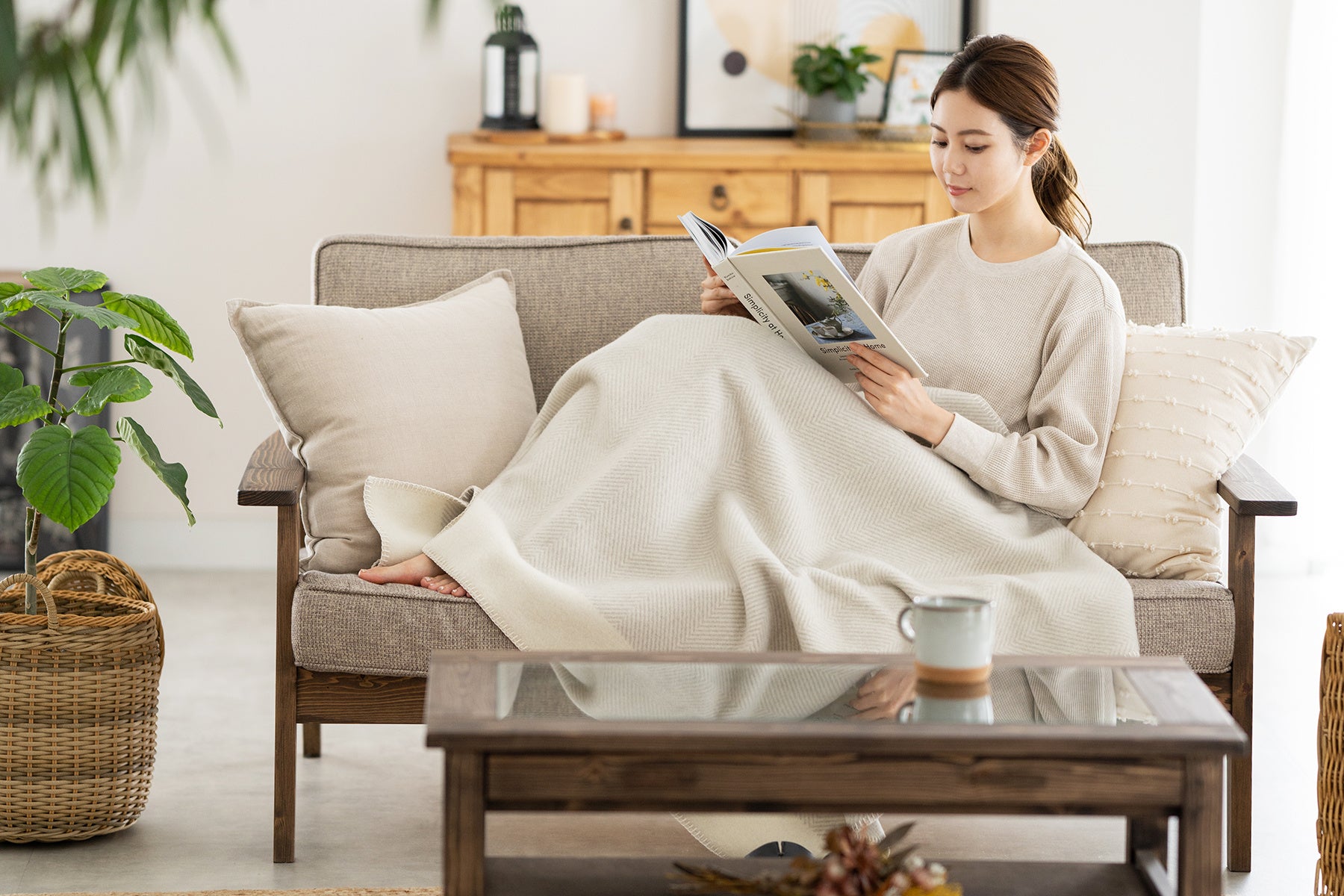 暖房を控えめに使うからこそ、軽くて暖かく室内で持ち運びしやすいサイズ感「膝掛け」としても使いやすい。