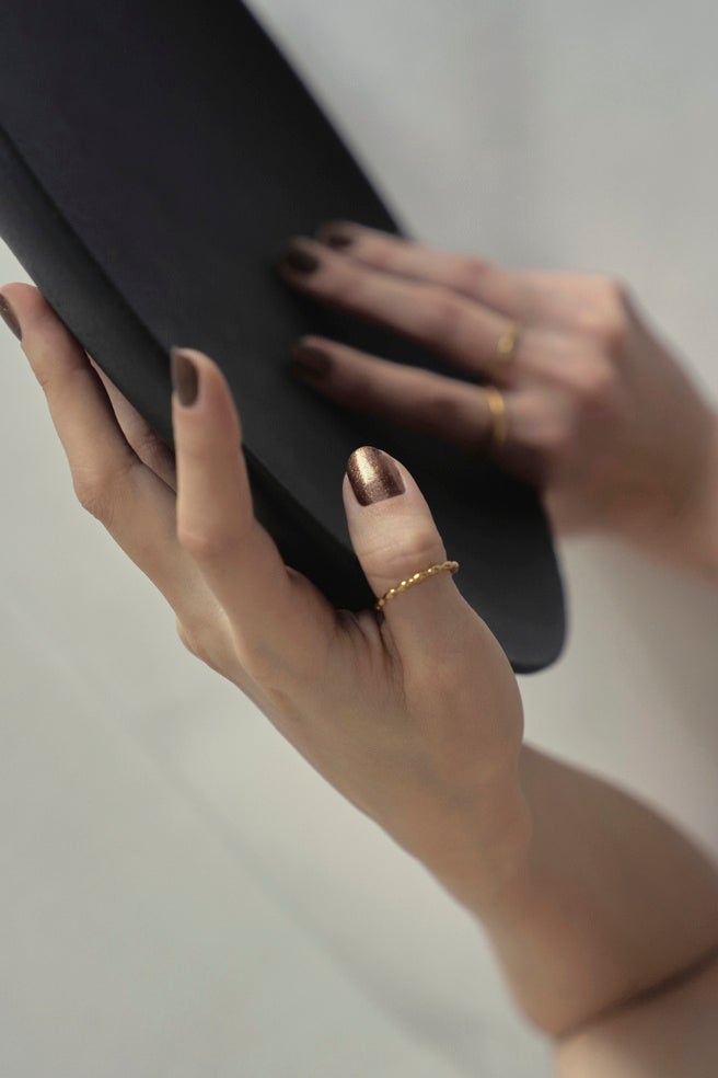 空間を邪魔しない、容器デザインにもこだわった大人のネイルポリッシュ。気持ちや服装が明るくなる春にあえて、くすみ系やダークトーンを指先に忍ばせることでスタイリングの幅が広がります。
