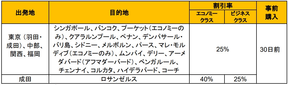 今年が大阪-シンガポール線の就航50周年の節目になることを記念し、お客様への感謝の気持ちを込め本日、2022年10月28日から2022年11月17日の間、お得な期間限定運賃を販売いたします。東京(羽田、成田)、大阪、名古屋、福岡よりご出発のお客様は、世界中にある魅力的なシンガポール航空の就航先の都市への旅をお得な運賃でお楽しみいただけます。