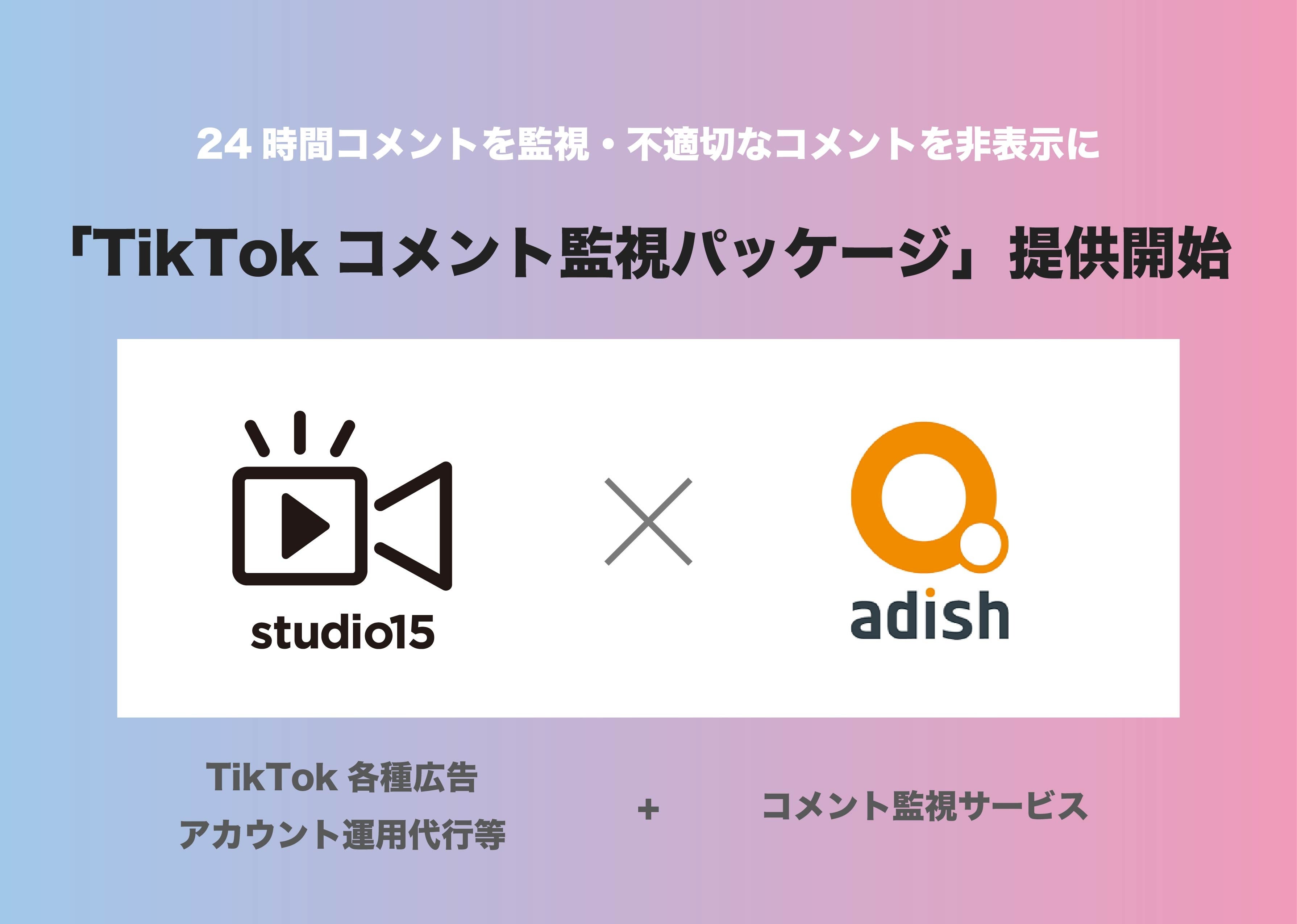 今回studio15がアディッシュと提携して提供するのは、TikTokの広告案件やアカウント運用などの投稿動画において炎上につながる可能性があるコメントを監視、適宜非表示にするパッケージプランです。