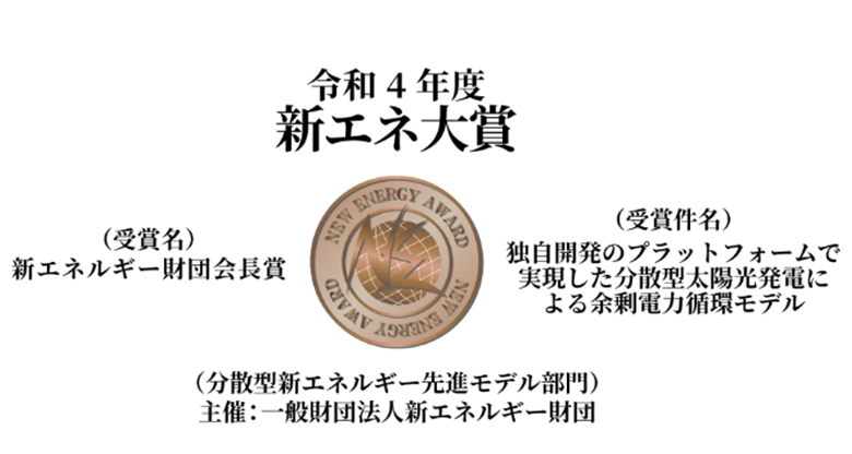 グリーンテックを推進し、グリーンエネルギーが地域をめぐるサスティナブルな世界の実現を目指す株式会社アイ・グリッド・ソリューションズ(本社:東京都千代田区、代表取締役社長:秋田 智一、以下「アイ・グリッド」)は、一般財団法人新エネルギー財団が主催する「新エネ大賞」の分散型エネルギー先進モデル部門において「新エネルギー財団会長賞」を受賞しましたのでお知らせいたします。