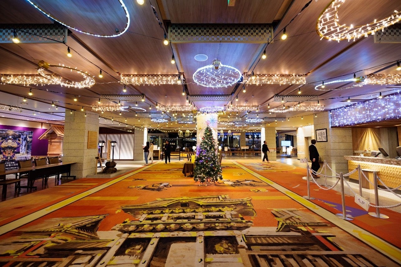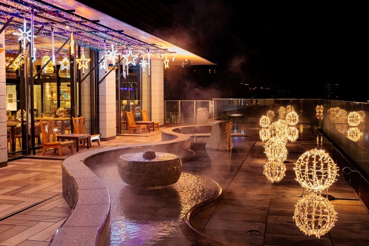 また玄関前では噴水イルミネーションショー「Dancing Water」、温泉大回廊では和傘のライトアップなど、冬でも楽しんでいただけるさまざまなイベントを連日開催しています。