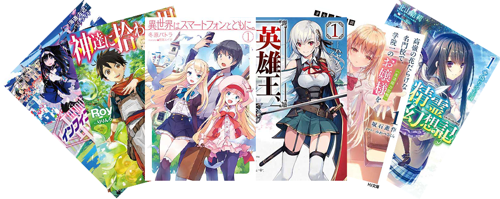 HJ文庫・HJノベルスではWEB発の書籍化を積極的に行っています。 2023年1月よりTVアニメ放送予定の『英雄王、武を極めるため転生す ~そして、世界最強の見習い騎士♀~』や『神達に拾われた男』をはじめとして、『異世界はスマートフォンとともに。』『精霊幻想記』など、アニメ化やコミカライズされた人気作が充実。