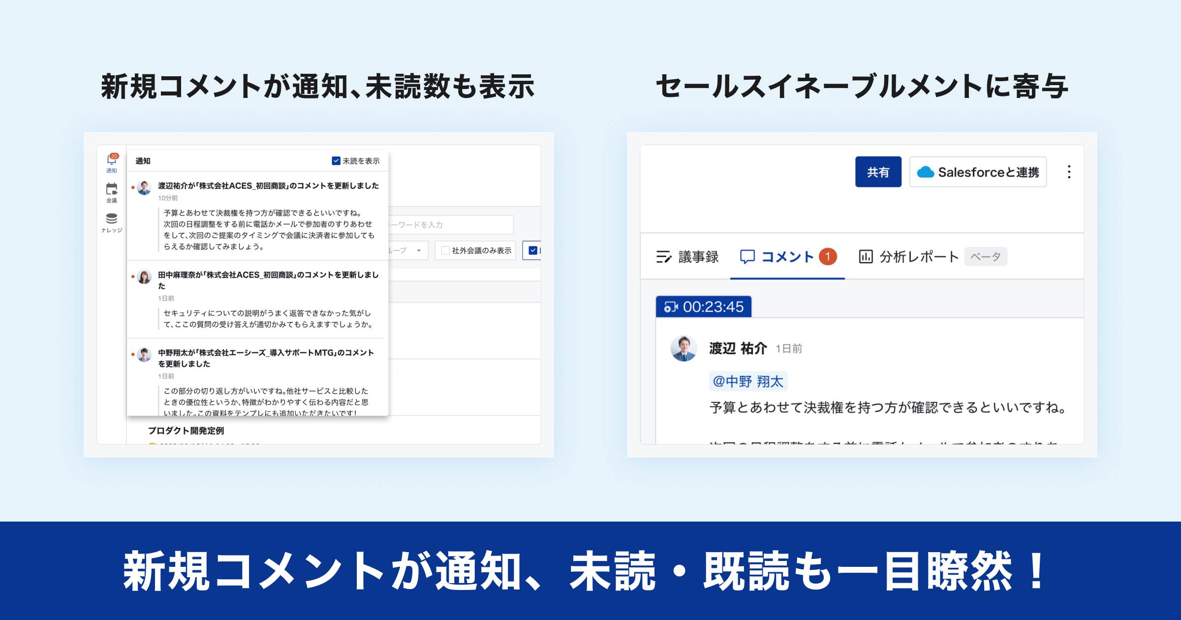 セールスイネーブルメントAIツール「ACES Meet」コメント通知機能を追加しました