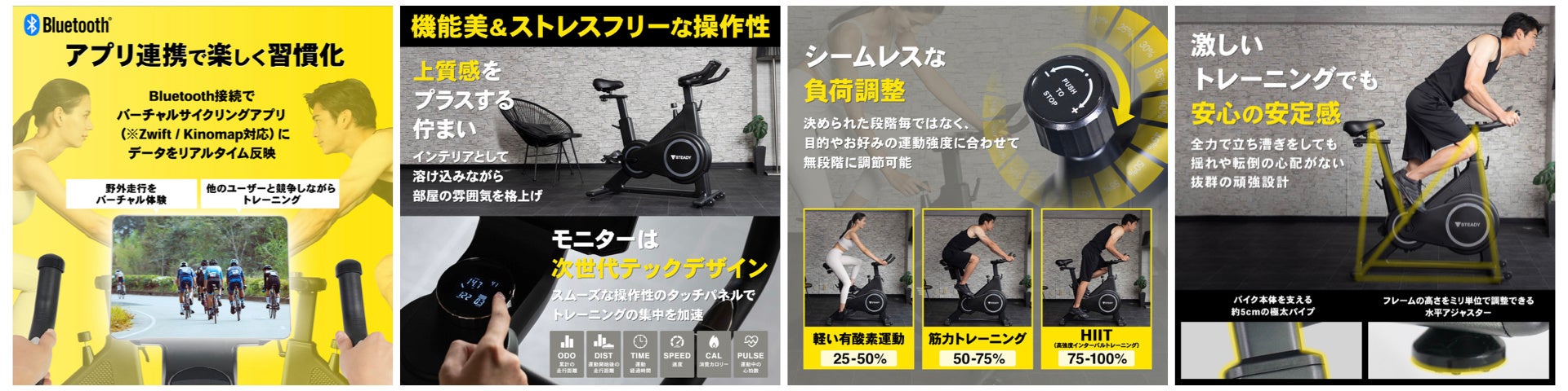 アプリ連携×次世代デザインでモチベーション持続! スマートに有酸素運動を習慣化できる「STEADYスピンバイク Plus」を販売開始