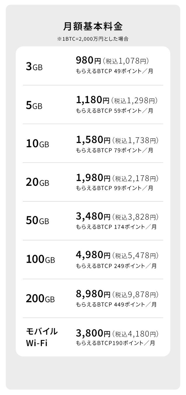 『BTCモバイル』は、通信料金の支払いに応じて、ビットコイン価格に連動するポイント「BTCP」が貯まる、業界初の通信サービスです。