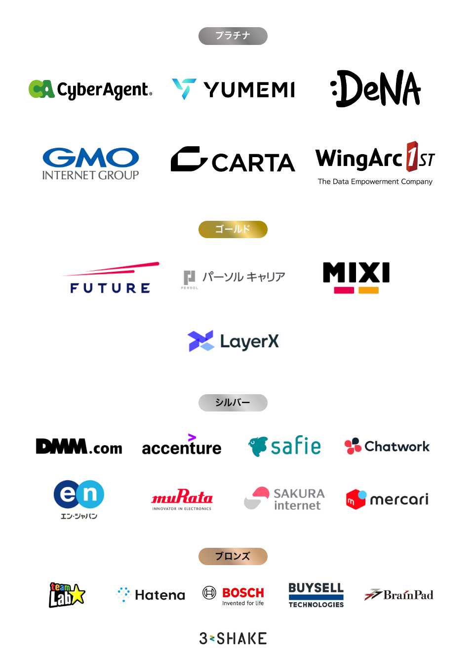 株式会社サイバーエージェント/株式会社ディー・エヌ・エー/GMOインターネットグループ株式会社/株式会社CARTA HOLDINGS/ウイングアーク1st株式会社/フューチャー株式会社/パーソルキャリア株式会社/フューチャー株式会社/株式会社LayerX/合同会社DMM.com/アクセンチュア株式会社/セーフィー株式会社/Chatwork株式会社/エン・ジャパン株式会社株式会社村田製作所/さくらインターネット株式会社/株式会社メルカリ/チームラボ株式会社/株式会社はてな/ボッシ株式会社/株式会社BuySell Technologies/株式会社ブレインパッド/株式会社スリーシェイク など