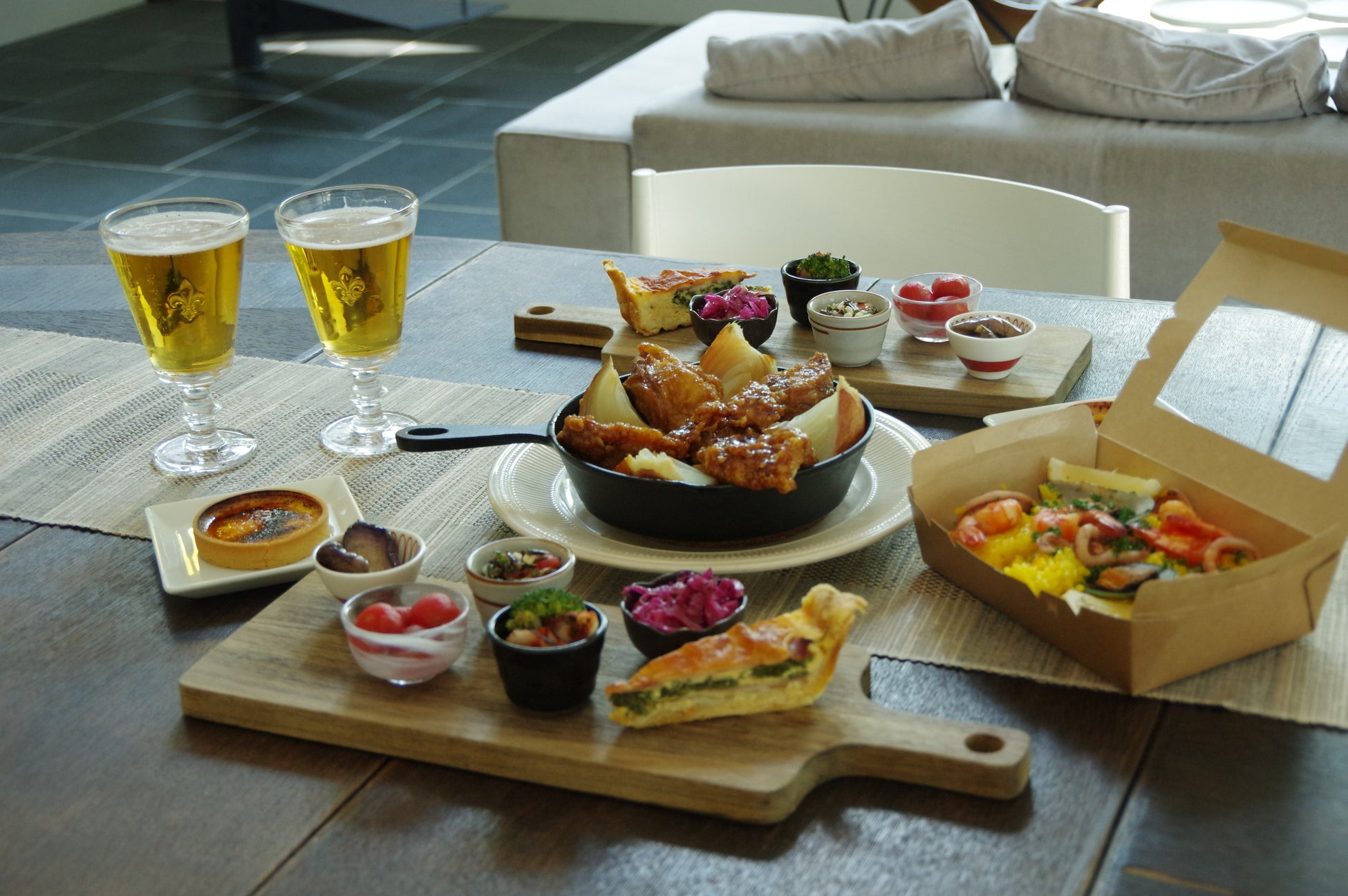 このプランでは、100%サスティナブルな「クラフトグリル」を使用し、自分で焼き上げるHIMONO Pinchosをお楽しみいただけます。香ばしく焼き上げた干物と新鮮な風味を、お好みのお酒と一緒に堪能できる特別な体験です。さらに、GOODSTOCKのデリ8種や、みんなでシェアできる彩り豊かなパエリアもご用意。天気の良い日には、テラスでアウトドア気分を味わいながらお食事をお楽しみいただけます。美味しい食事を満喫した翌朝には、葉山のお弁当屋さんが手がけた朝食BOXをお届け。ひとつひとつ手作りされた温かみのある味わいと、新鮮な素材を使った美味しさで、素敵な一日のスタートを切ることができます。新緑に包まれた葉山の自然や心地よい春風を感じながら、非日常のひとときをお楽しみください。ご家族やご友人との思い出づくりはもちろん、美味しい料理を心ゆくまで楽しみたい方にもぴったりのプランです。