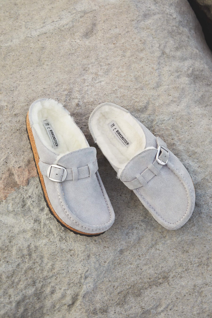 BIRKENSTOCK (ビルケンシュトック)2022年秋冬コレクションより、モカシンタイプのクロッグBUCKLEY(バックリー)を発売いたします。今シーズンはスウェードタイプに加え、ファーをあしらったシアリングタイプも登場。BUCKLEYは、フットベッドにアッパーのスウェードを直接張り付けているため、しっかりとしたホールド感と抜群の履き心地を味わえます。さらに、アイコニックなバックルで甲の高さを調整でき、一人ひとりに合ったフィット感に合わせられます。シアリングタイプは、足全体をファーが包み込むように施されており、まるでブランケットに包まれているような安心感と温かさです。