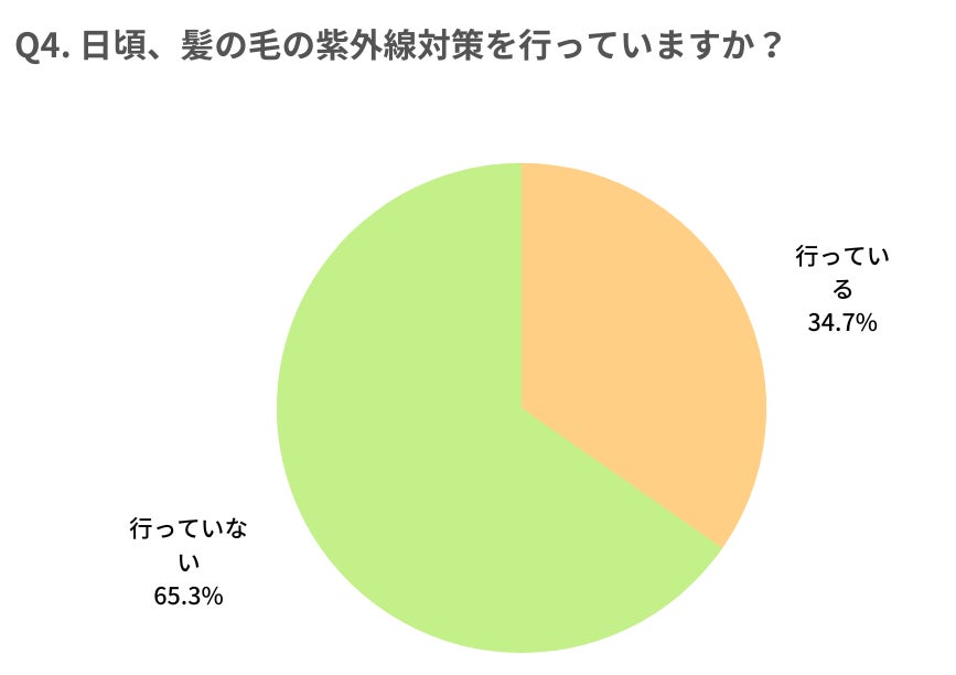 - 髪の紫外線対策は、約7割が行っていないという結果に