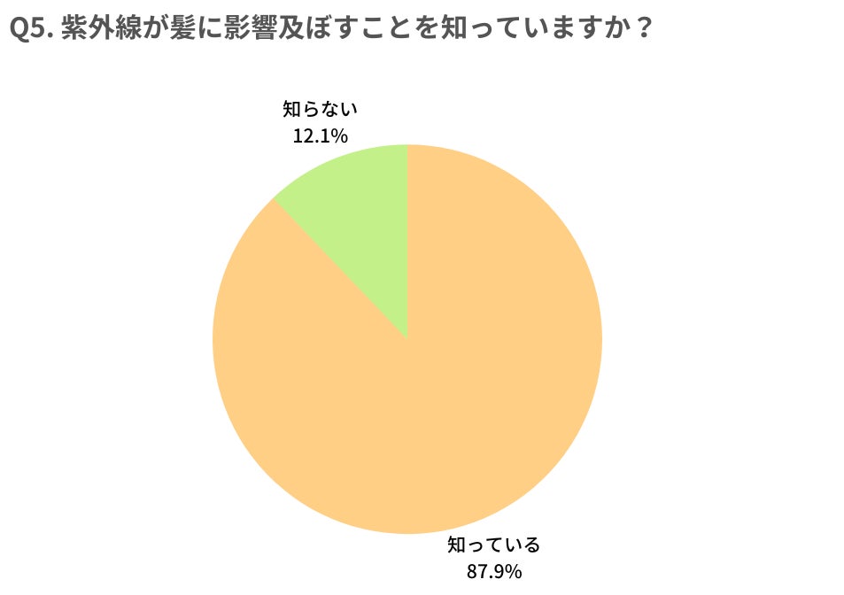 - 紫外線が髪の毛に及ぼす影響を、約9割の方が知っている