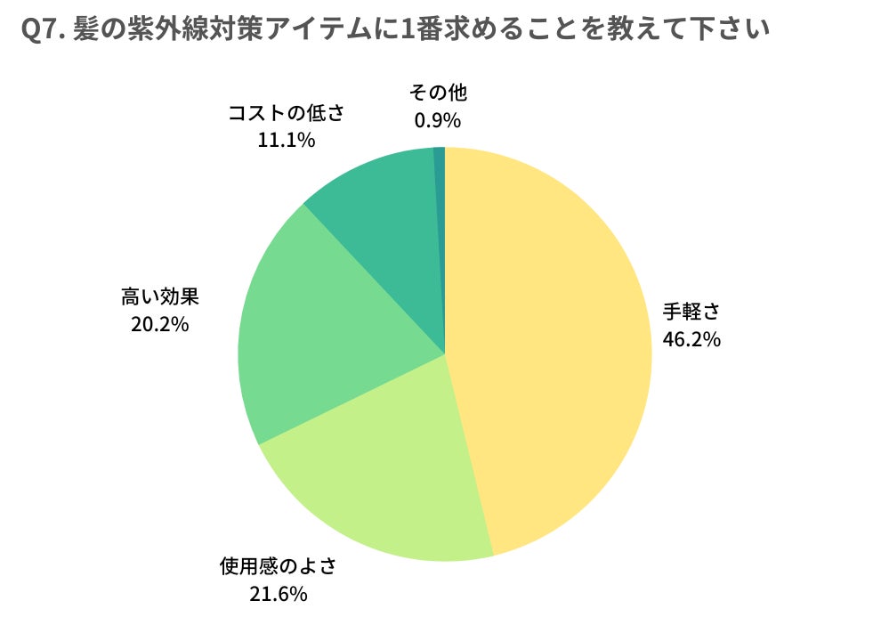 - 髪の毛の紫外線対策、一番求めるものは「手軽さ」が約半数