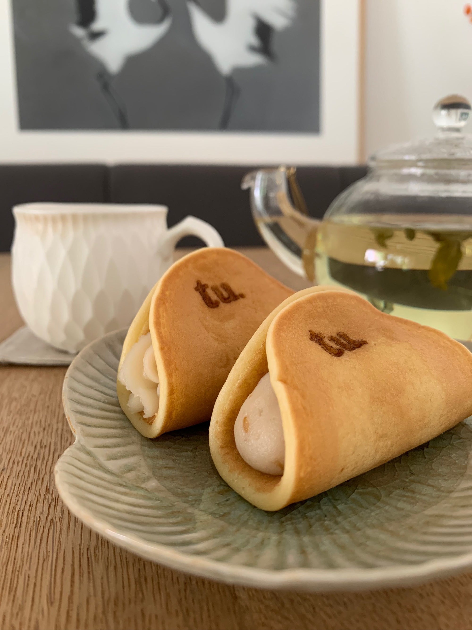 鶴屋吉信のベストセラー焼き菓子「つばらつばら」を、カフェ「tubara cafe」オリジナルのメニューにアレンジ。工場直送・もっちり、しっとり、香ばしい焼き皮に、備中白小豆使用の「白あん」とマスカルポーネをブレンドした、ふんわりクリーミーな「マスカルポーネあん」を包んで「ふわもち」っと絶妙なマッチングに仕上げた人気メニューです。