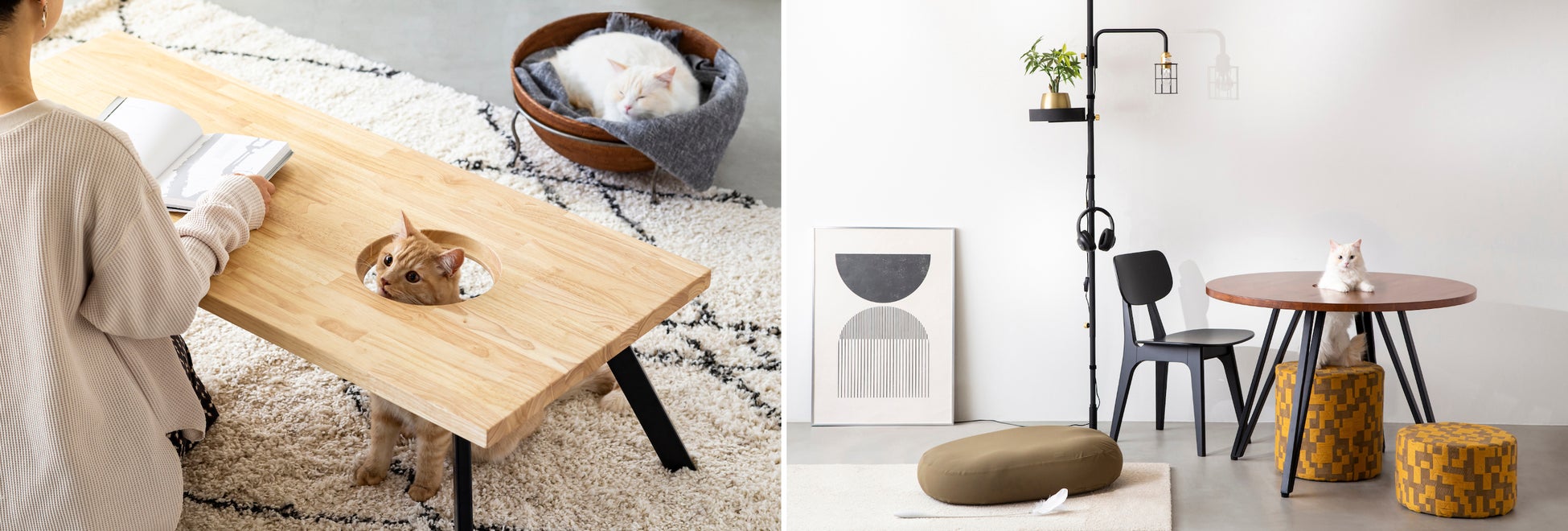 ネコ穴付きテーブルも拡充。遊び心豊かな猫との暮らしを創出します。
