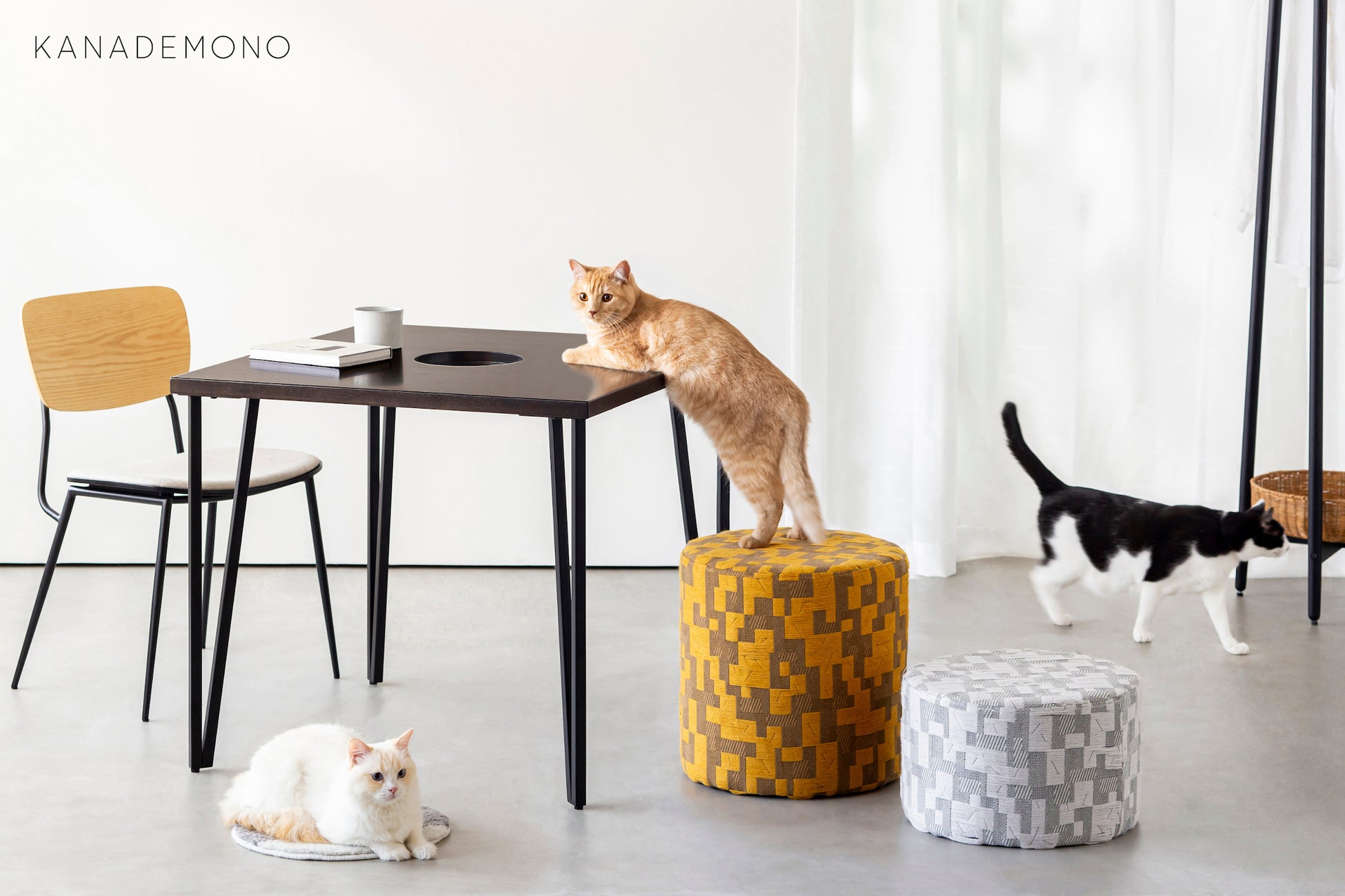KANADEMONOより、爪とぎ対策不要「猫の手も借りたいスツール」発売開始。ひっかいた痕がデザインに。「人と猫の生活に調和する」アイテムも同時発売。