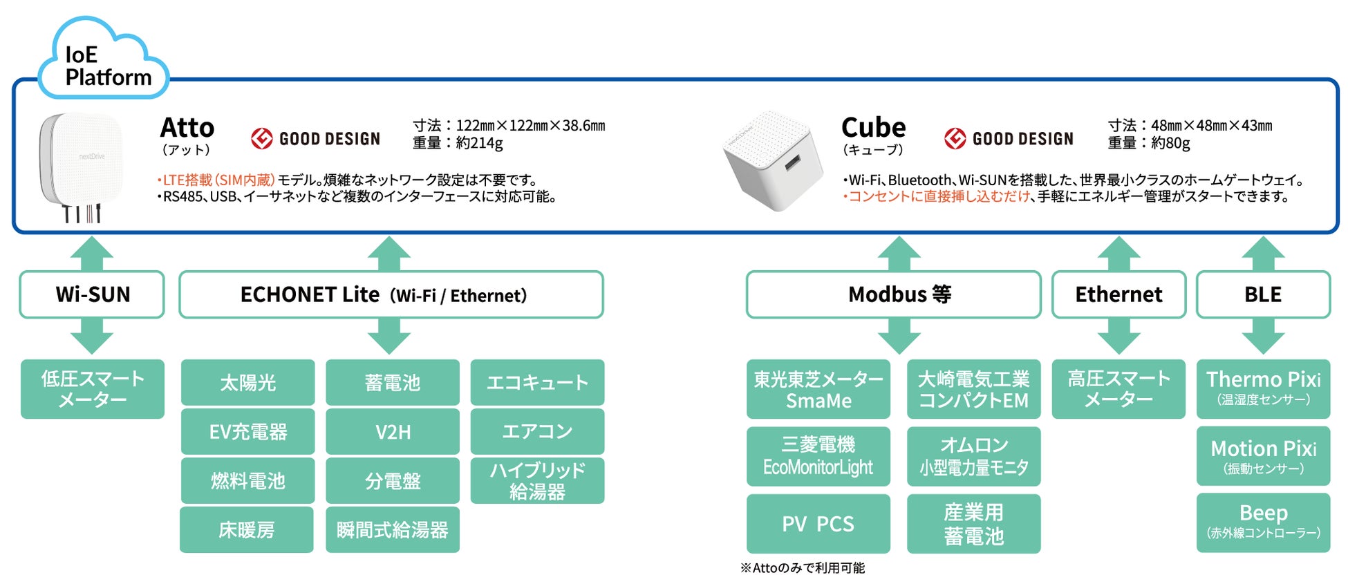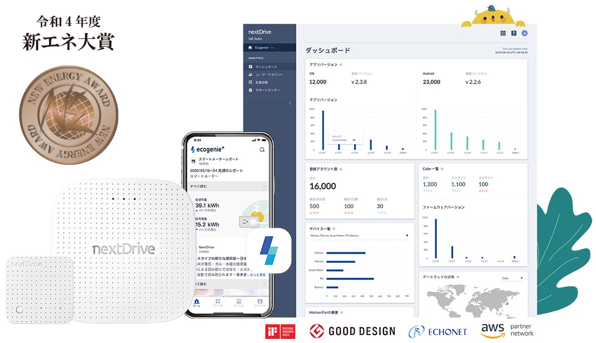 IoE(Internet of Energy:エネルギーとインターネットの融合)、IoT、HEMSを活用したエネルギー管理とクラウドサービスを開発・提供する、エネルギーデータ プラットフォーム企業です。IoTとソフトウェア・ハードウェア技術を統合し、電力会社をはじめとするエネルギー関連企業にワンストップでエネルギーデータ プラットフォームサービスを提供しています。