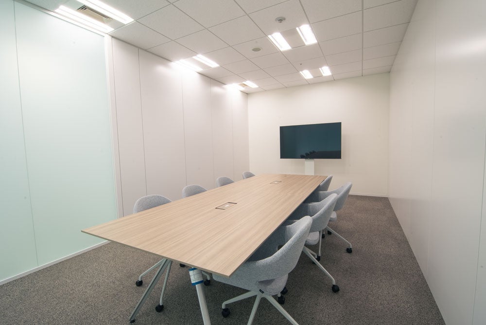 社員数・商談数の増加に伴い、会議室を増設しました。会議室のライトを明るくすることで、会話しやすい柔らかな雰囲気に演出しています。さらに壁にはホワイトボードを埋め込むことで、効率的で質の高い会議の実現をサポートし、より最適な判断や連携ができるような環境にすることを意識しました。