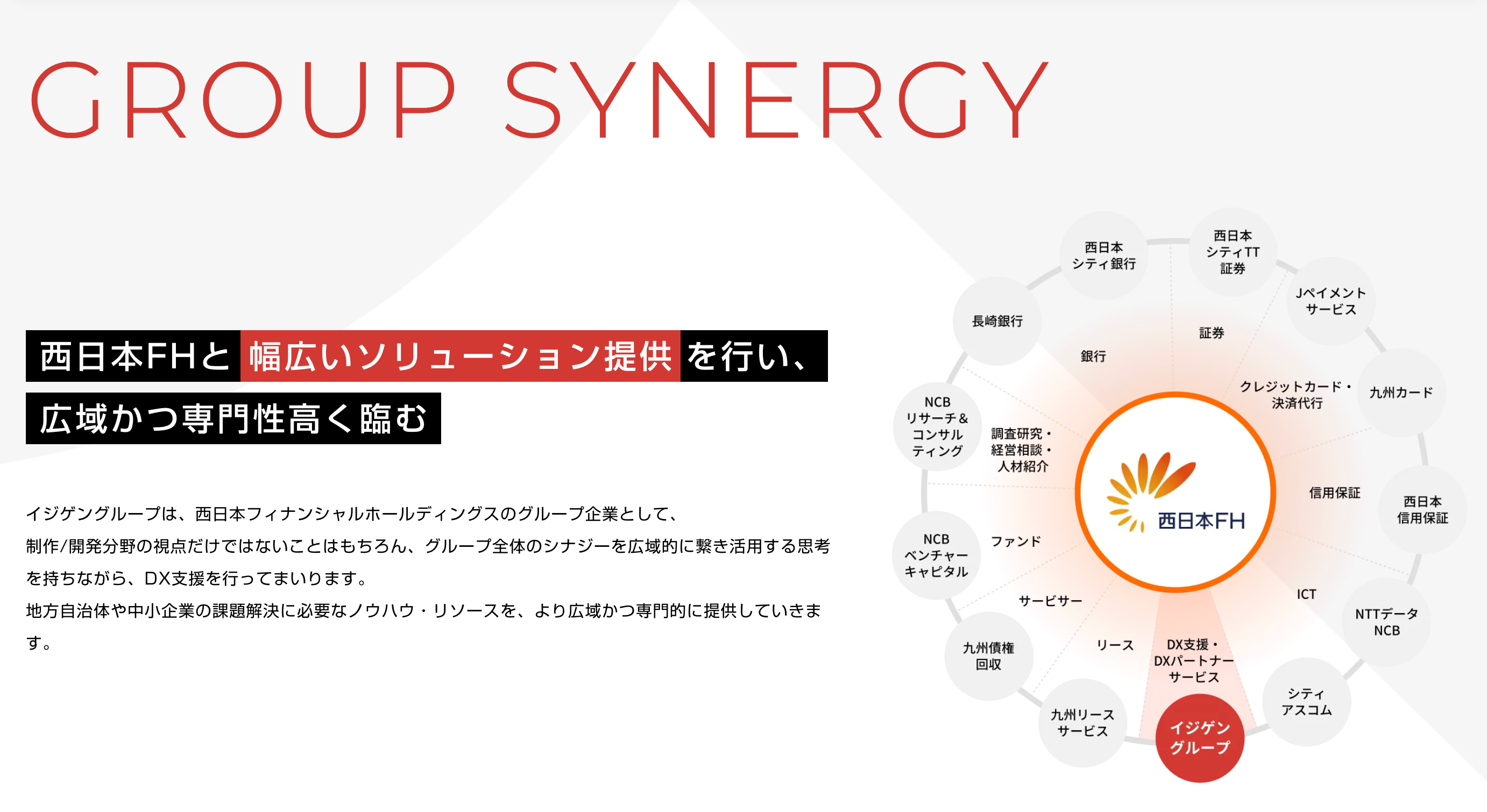西日本FHとは約一年間協業を行い、お互いの地域社会に対する想いやその使命感が一致していること、お互いの課題を補完し合えること、その上でシナジーを生み出せる関係性であることを確認しました。このような経緯の中で、イジゲングループが西日本FHのグループに入りその資産を活用することが、自社のポテンシャル最大化、更にはより多くのお客様の課題解決に繋がると確信し、今回の形を取ることとなりました。
